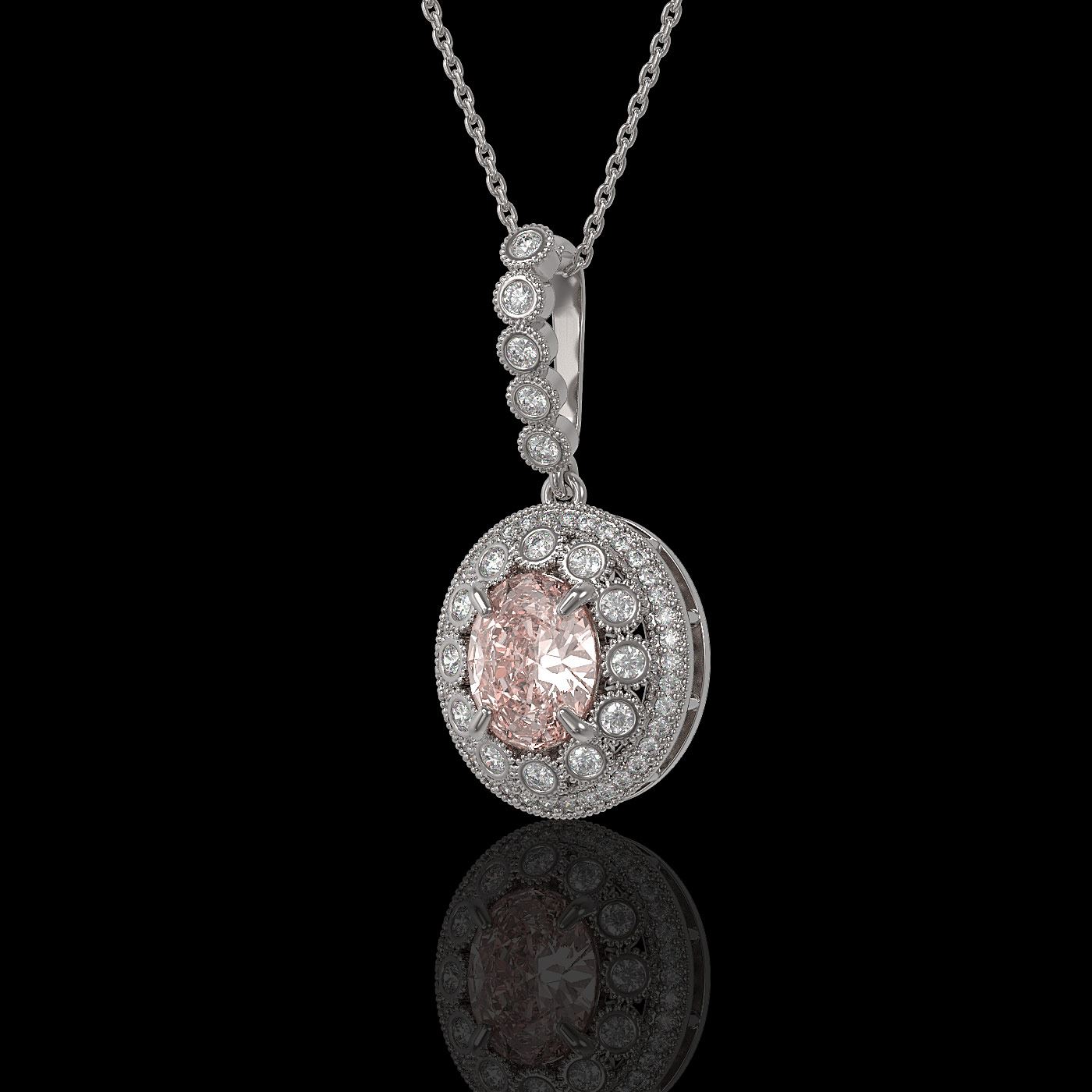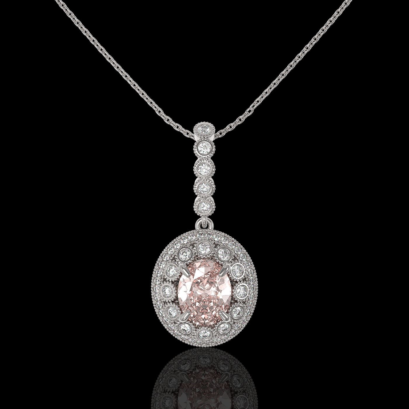 REF-167Y5X - SKU: 43679 ---- 3.92 ctw Morganite & Diamond Victorian Necklace 14K White Gold