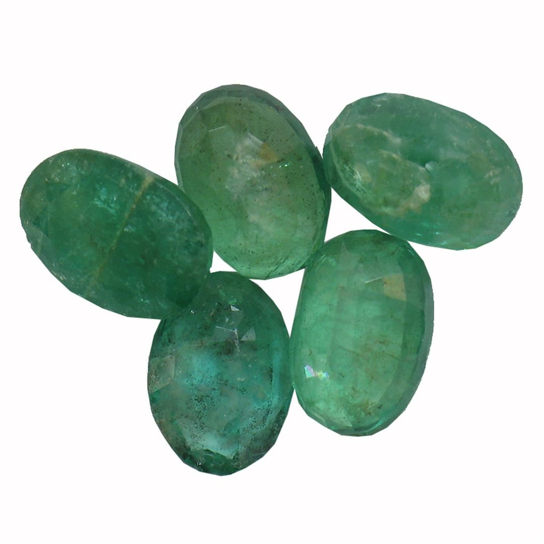 Five oval mixed cut natural emeralds exact total weight 3.92ct., clarity is heavily included, type III, medium dark, very slightly grayish, very slightly bluish green color, (GIA vslbG 6/3), cut is good. Westfield Appraised at $1,130.00.