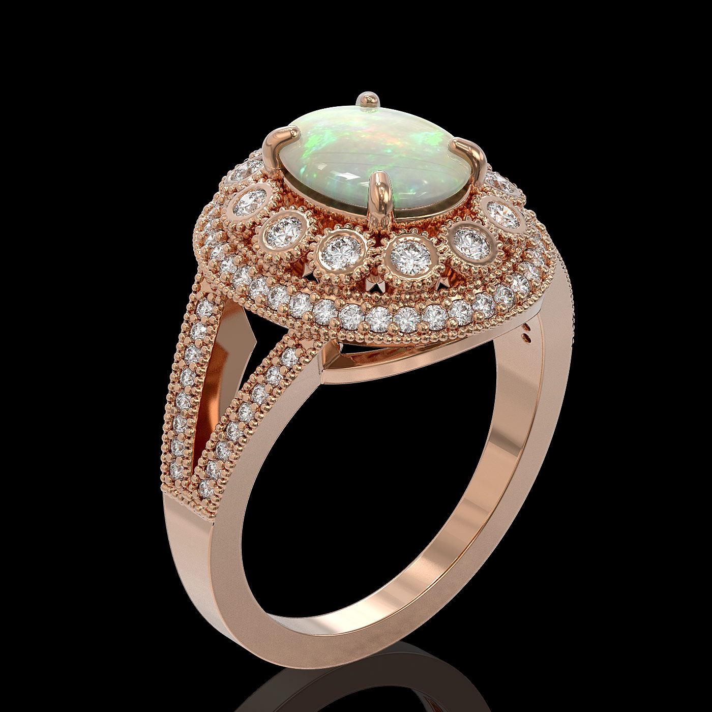 REF-149R3K - SKU: 43593 ---- 3.93 ctw Certified Opal & Diamond Victorian Ring 14K Rose Gold