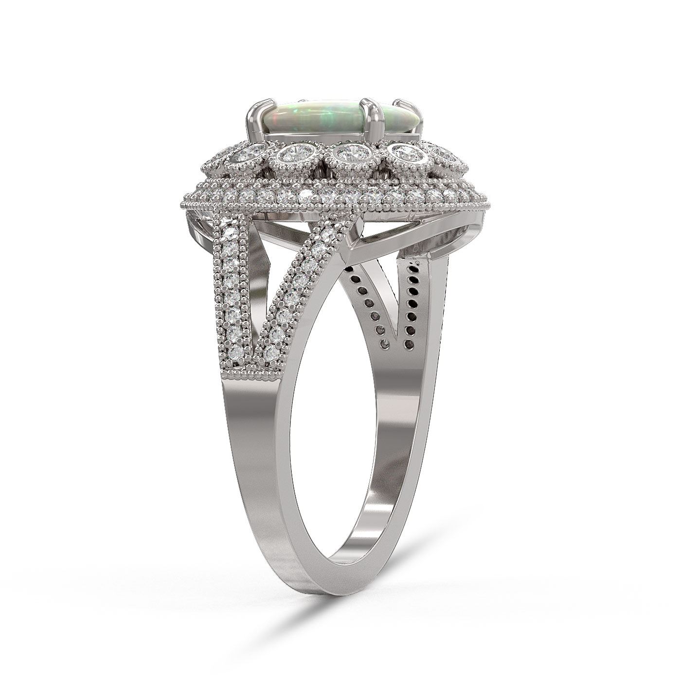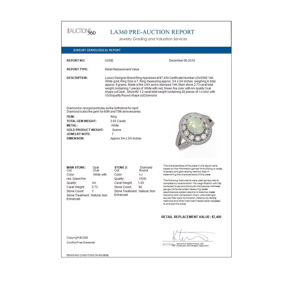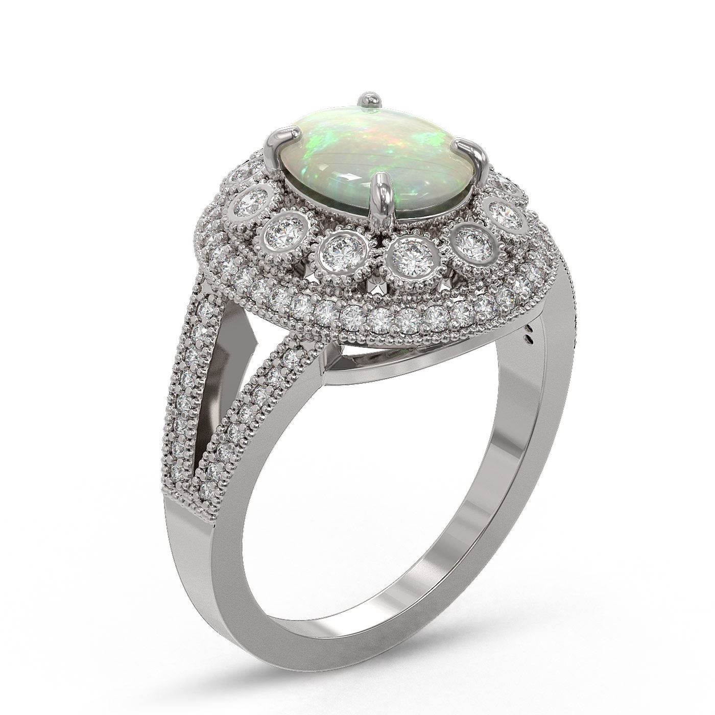 REF-149H3R - SKU: 43592 ---- 3.93 ctw Certified Opal & Diamond Victorian Ring 14K White Gold
