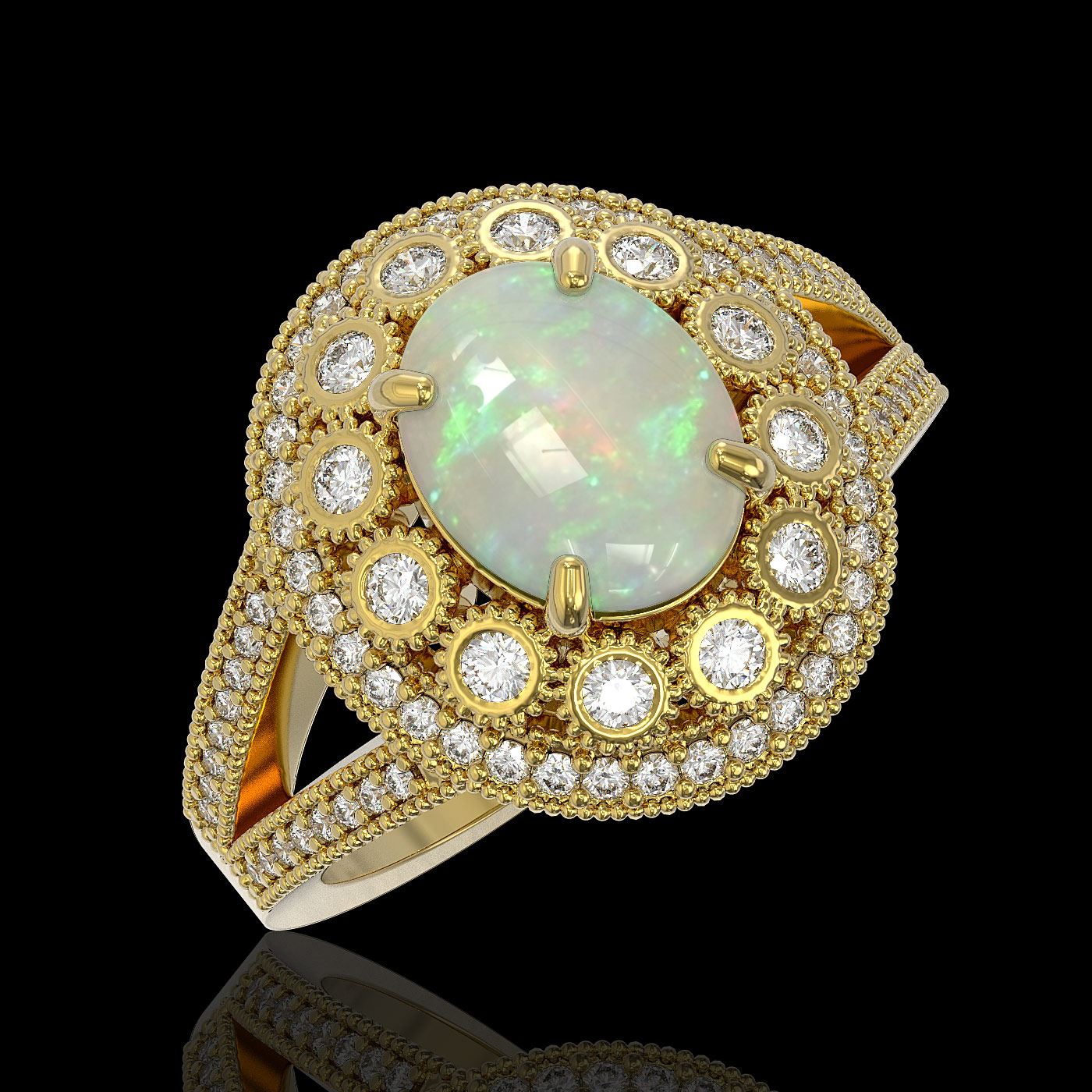 REF-149Y3X - SKU: 43594 ---- 3.93 ctw Certified Opal & Diamond Victorian Ring 14K Yellow Gold