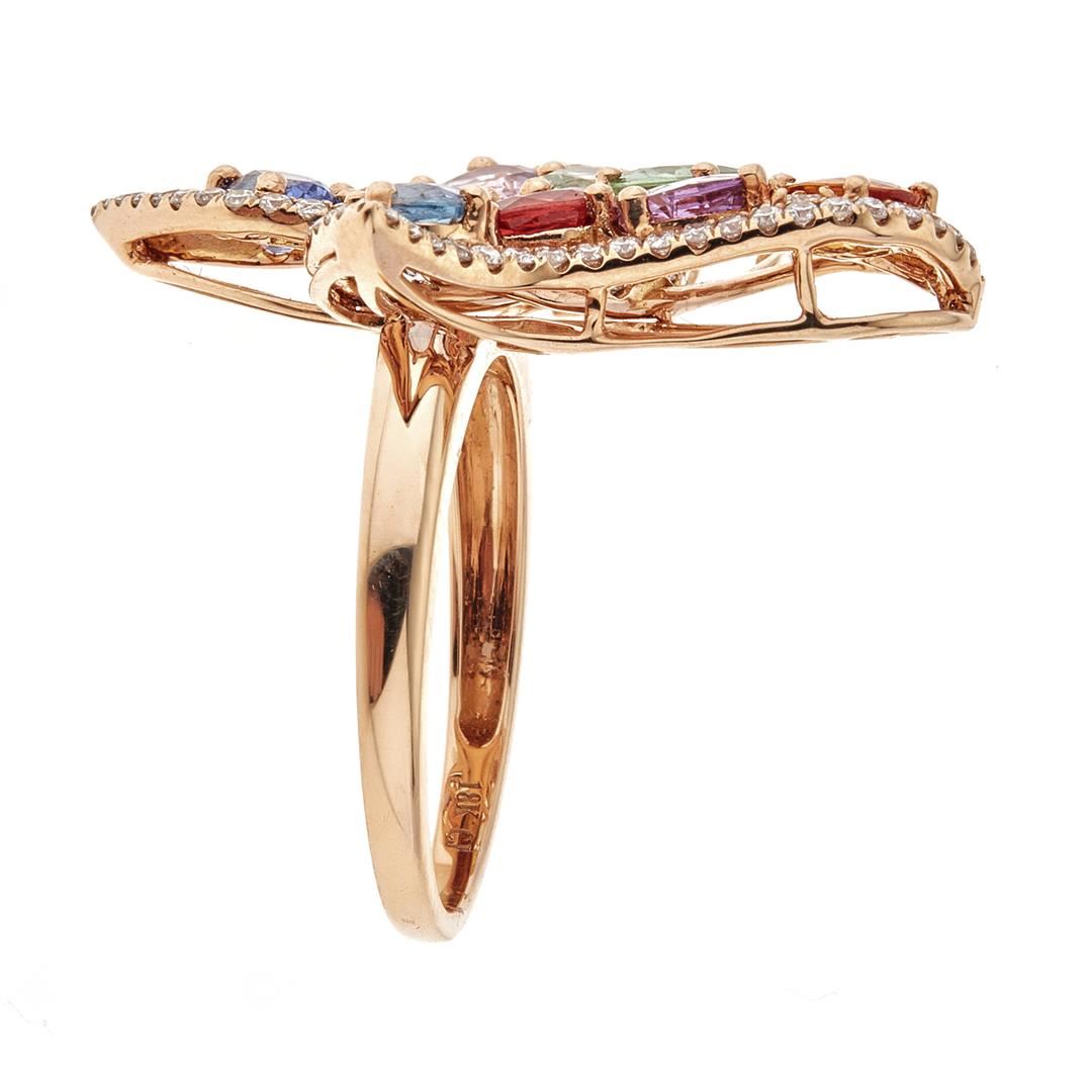 One lady's butterfly ring featuring: 18KT rose gold weighing 6.66 grams containing multi-colored gemstones weighing 3.93ctw and diamonds weighing 0.71ctw.