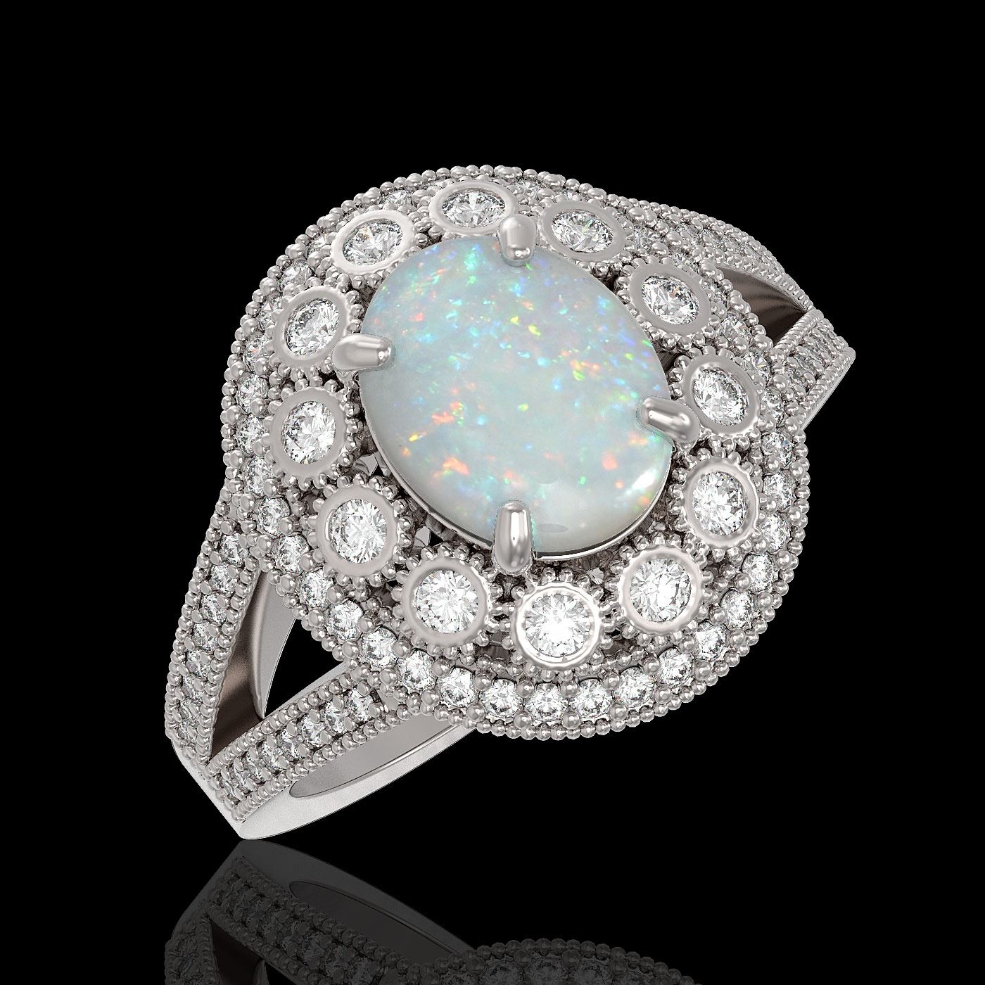 3.93 ctw Opal & Diamond Ring 14K White Gold