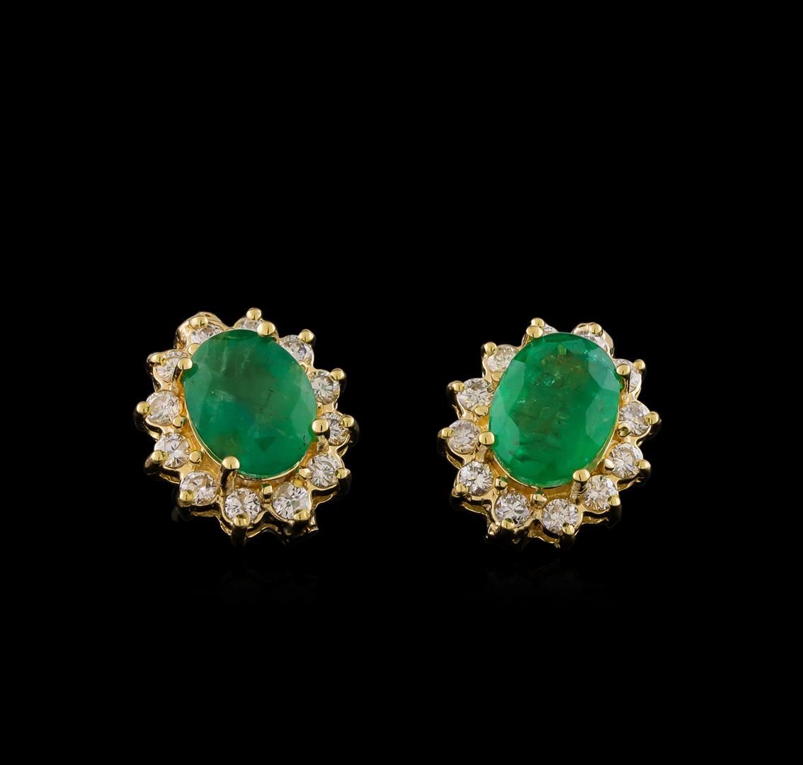 One pair of earrings featuring: 14KT Yellow gold weighing 3.53 grams containing Emeralds with a total weight of 3.94ctw and diamonds with a total weight of 0.82ctw.