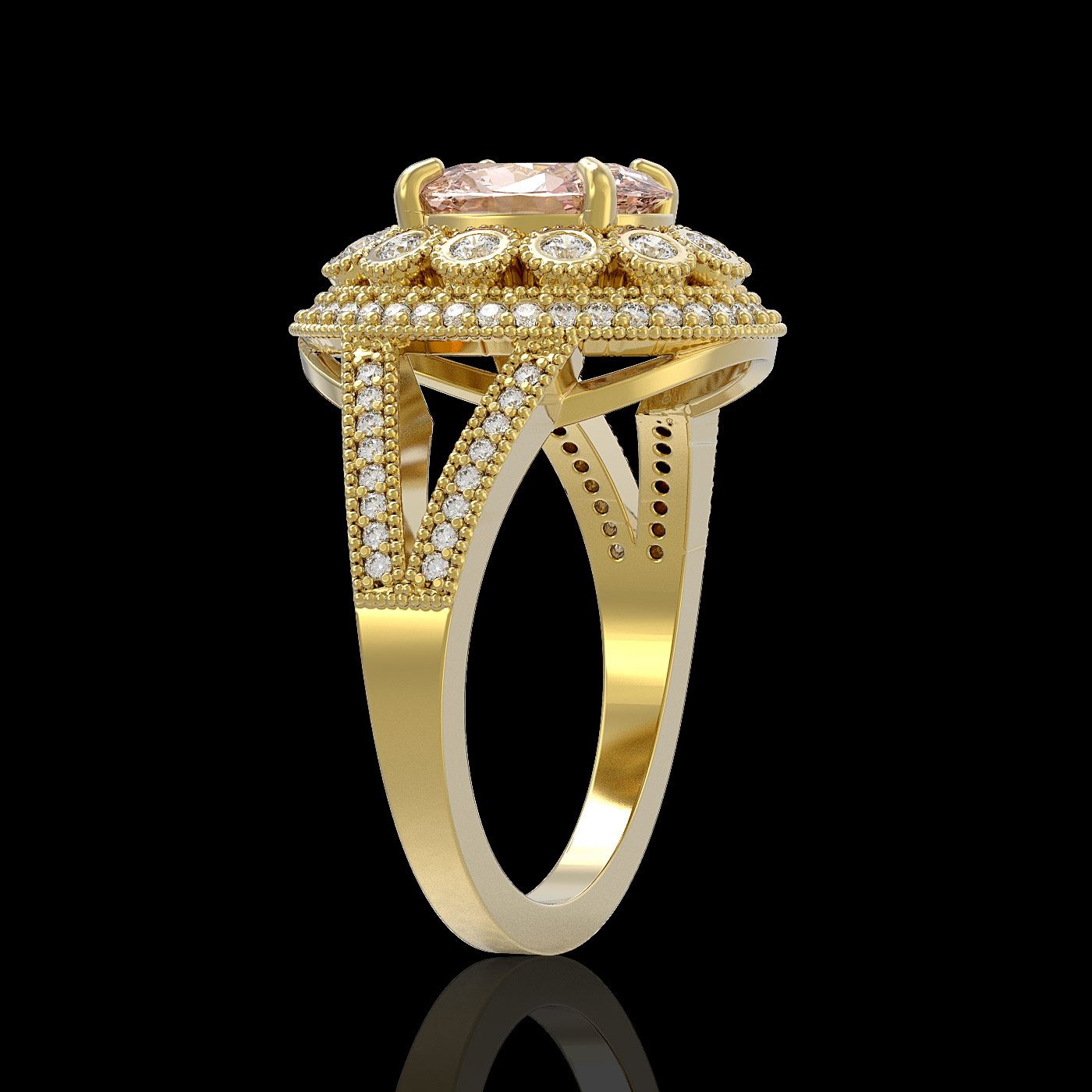 REF-176A8N - SKU: 43600 ---- 3.95 ctw Certified Morganite & Diamond Victorian Ring 14K Yellow Gold