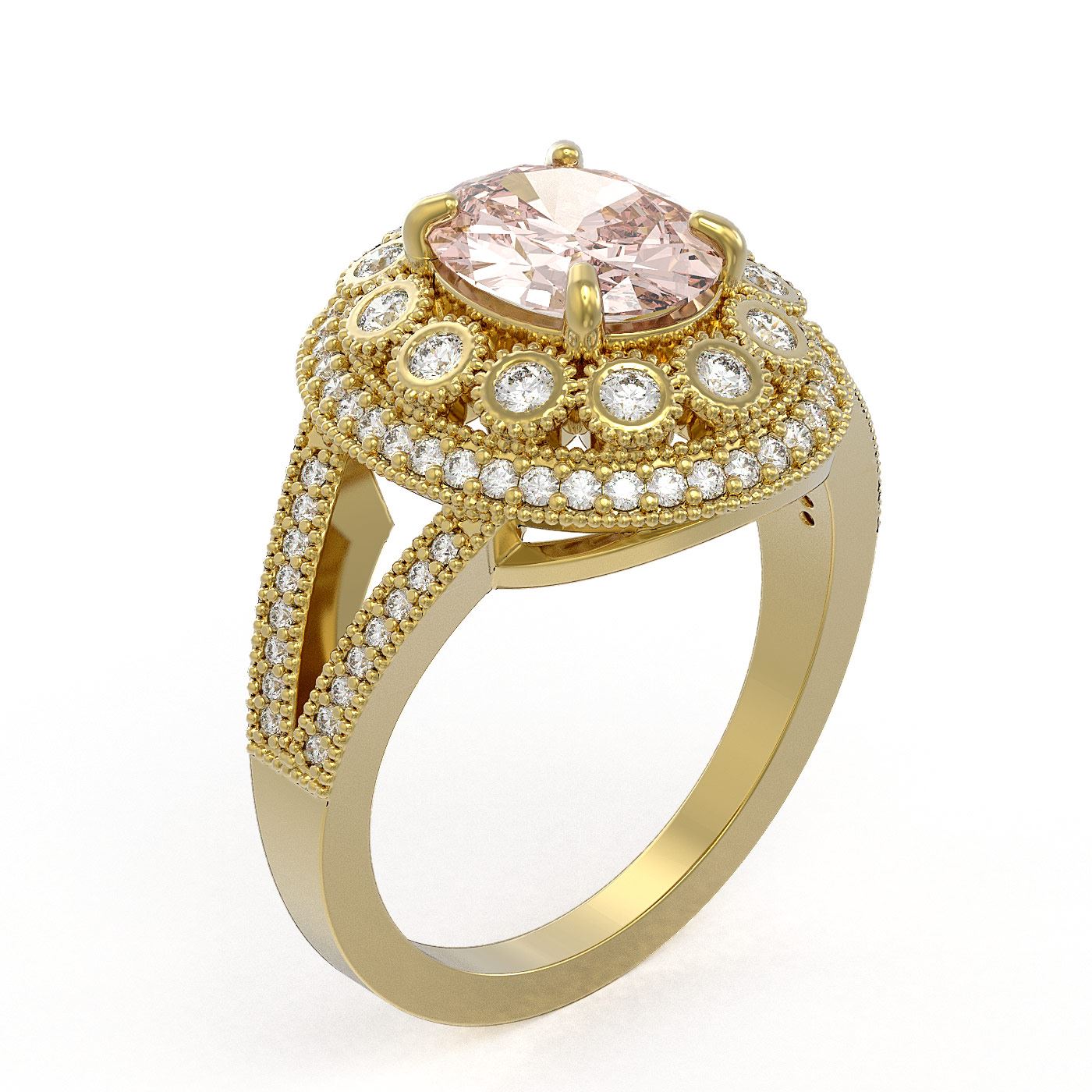 REF-176N8F - SKU: 43600 ---- 3.95 ctw Certified Morganite & Diamond Victorian Ring 14K Yellow Gold
