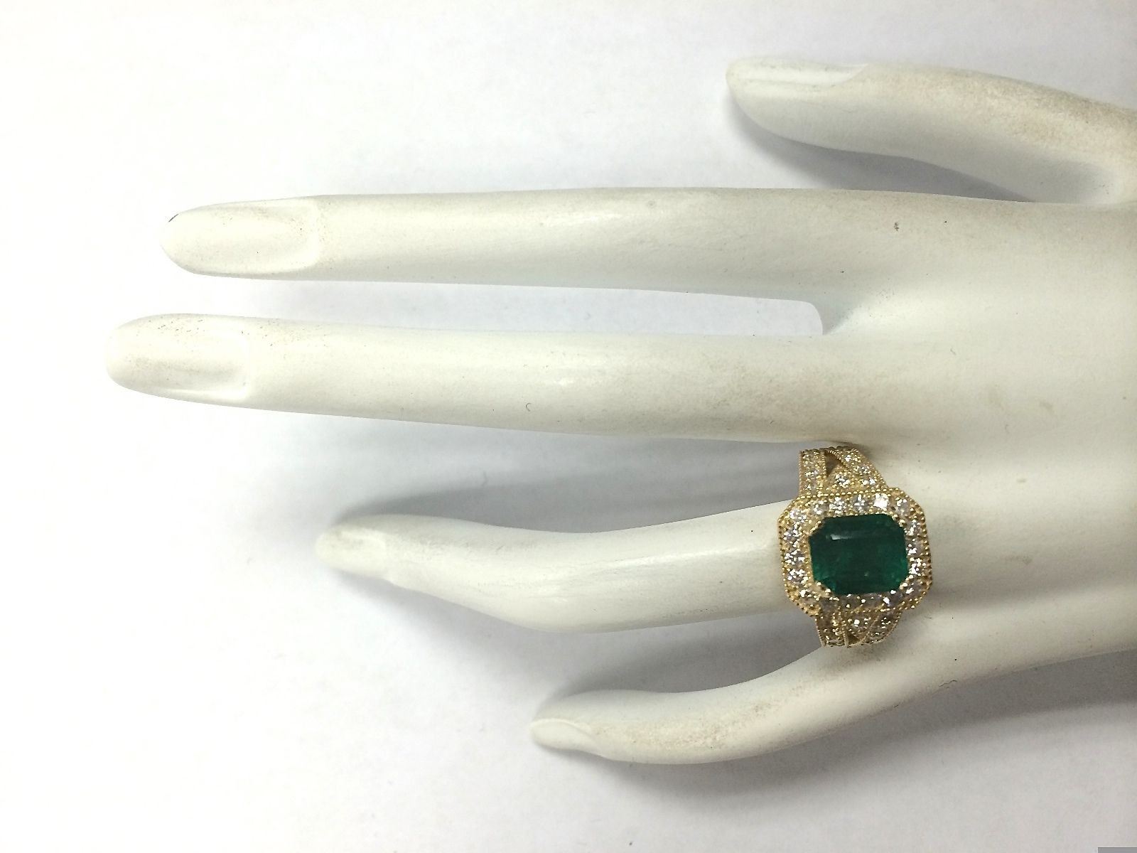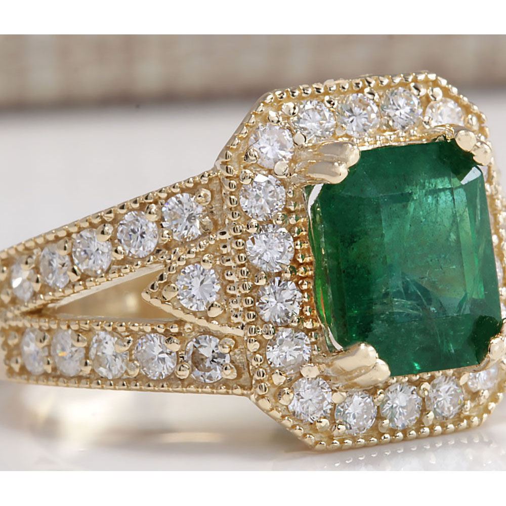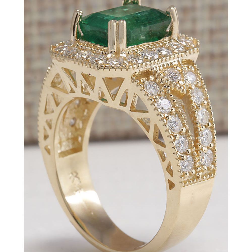 3.96 CTW Natural Emerald And Diamond Ring 14K Solid Yellow Gold