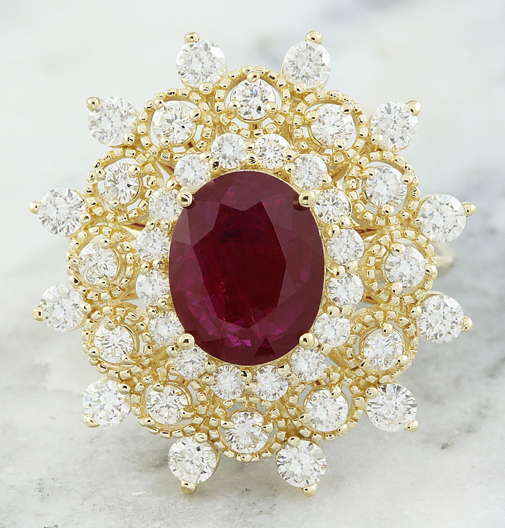 3.96  CTW Ruby 14K Yellow Gold Diamond Ring