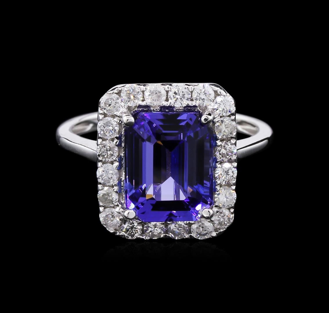 One electronically tested 14KT white gold ladies cast tanzanite and diamond ring with a bright polish finish. The featured tanzanite is set within a gallery of round brilliant diamonds, supported by a lattice under gallery, completed by a one and one half millimeter wide band. Trademark is ORIANNE. Identified with markings of "14K". Condition is new, good workmanship. Containing: One prong set rectangular step cut natural tanzanite, measuring 9.80 x 7.60 x 5.60mm, 5%. bulge factor, approximate weight of 3.96ct., clarity is eye clean, type I, medium dark, very slightly grayish, bluish violet color, (GIA bV 6/3), cut is good. Transmitting light with no distortion, transparent. Graded in the setting. Tanzanite is a very rare gemstone that is only found in the country of Tanzania. Originally discovered in 1967. Tiffany & Company, named the stone Tanzanite. It is found in the Usumburu Mountains that border the Umba Valley of northern Tanzania. Tanzanite occurs in gray, brown, violet, blue, reddish-purple, & green. The gem is interesting because of its exceptional pleochroism. Rotated in different directions a tanzanite will exhibit multiple changes of color. Tanzanite has a low tolerance to ultrasonic cleaning, and should not be cleaned using this method. Twenty prong set round brilliant cut diamonds, measuring 2.00 - 2.00 x 1.20mm (depth est.) approximate total weight of 20 Stones = 0.63ct. Graded in the setting. Clarity: SI-2 to I-1. Color: G - H. Total Weight of Colored Stones 3.96ct. Total Weight of Diamonds 0.63ct. Total Weight of Ring 4.28gm. AIG Appraised at $11,500.00.