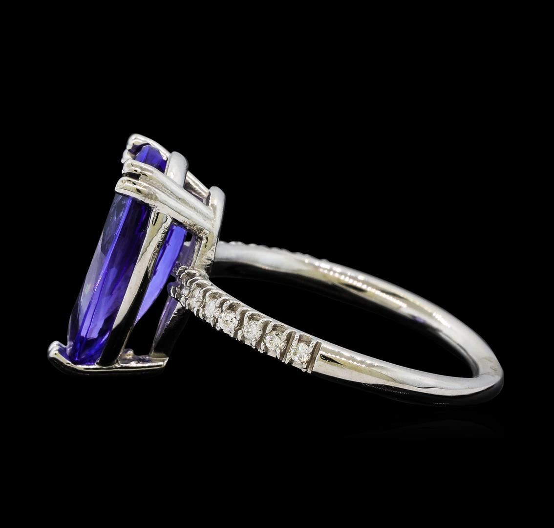One Tanzanite and Diamond Ring including: 14KT White Gold weighing a total of 3.47 grams, Tanzanite weighing a total of 3.97ct, and 14 Diamonds weighing a total of 0.11ctw.