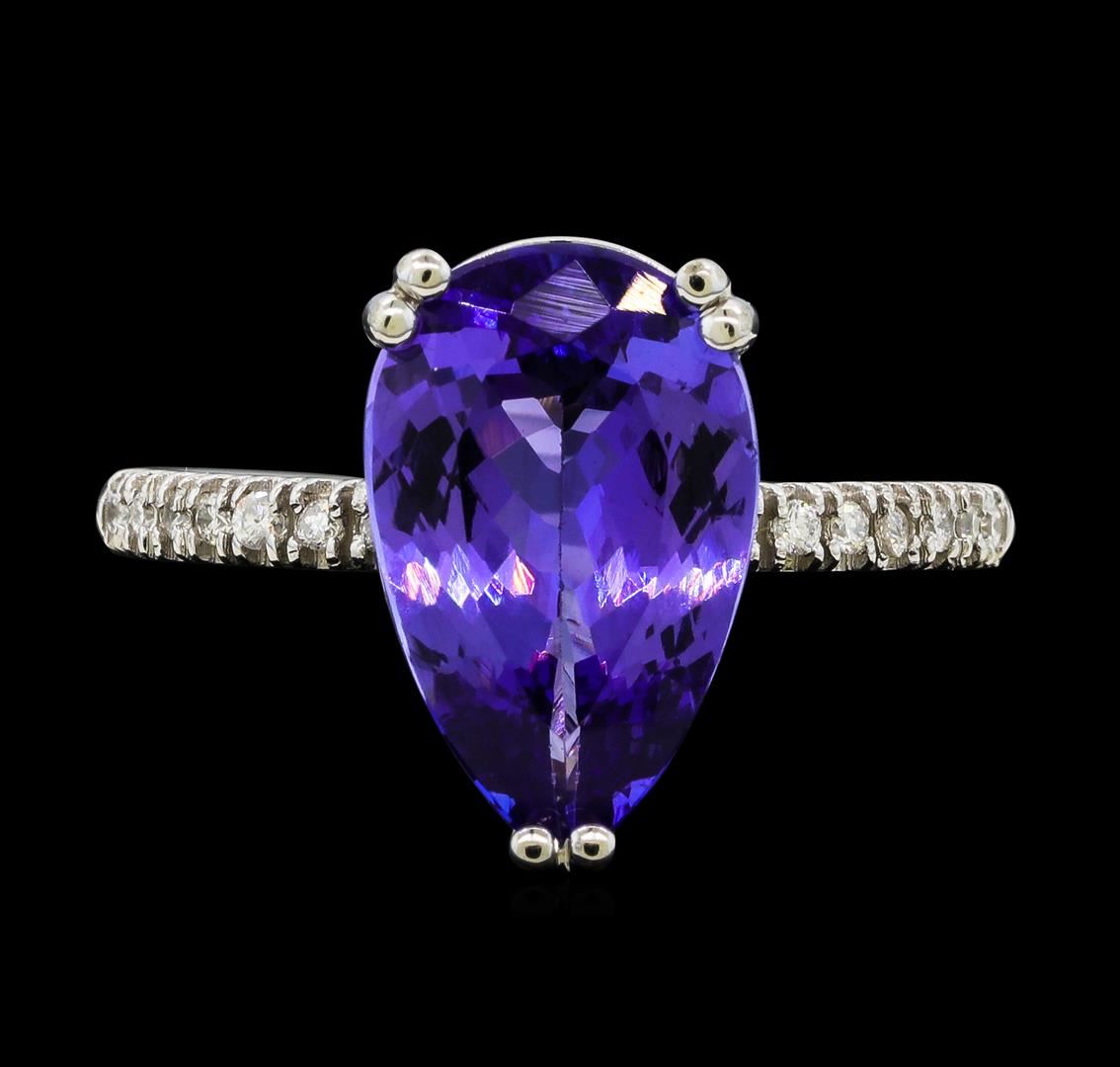 One Tanzanite and Diamond Ring including: 14KT White Gold weighing a total of 3.47 grams, Tanzanite weighing a total of 3.97ct, and 14 Diamonds weighing a total of 0.11ctw.