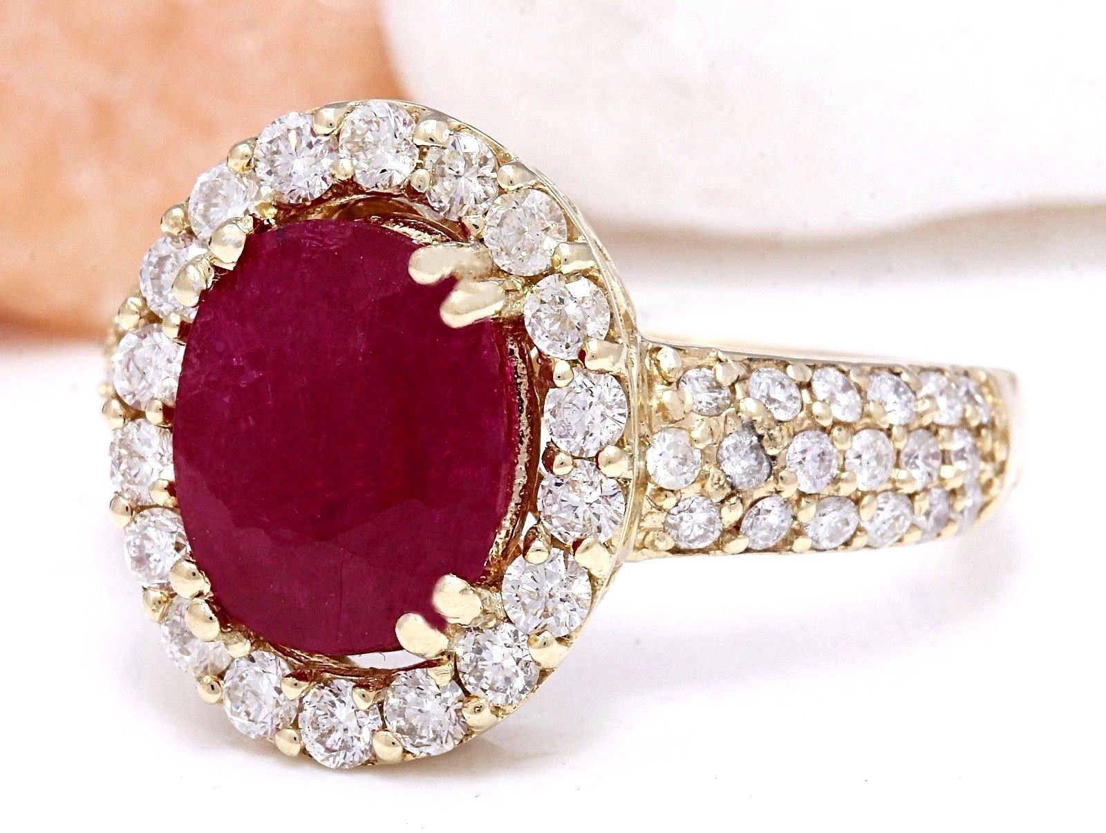 3.98 Carat Natural Ruby 14K Solid Yellow Gold Diamond Ring