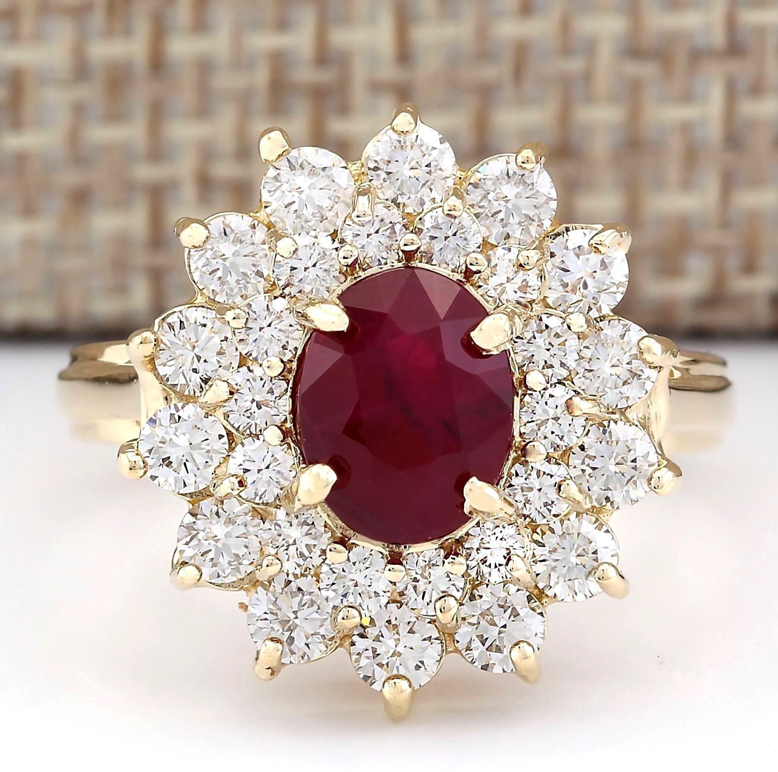 3.98 CTW Natural Ruby And Diamond Ring In 18K Yellow Gold