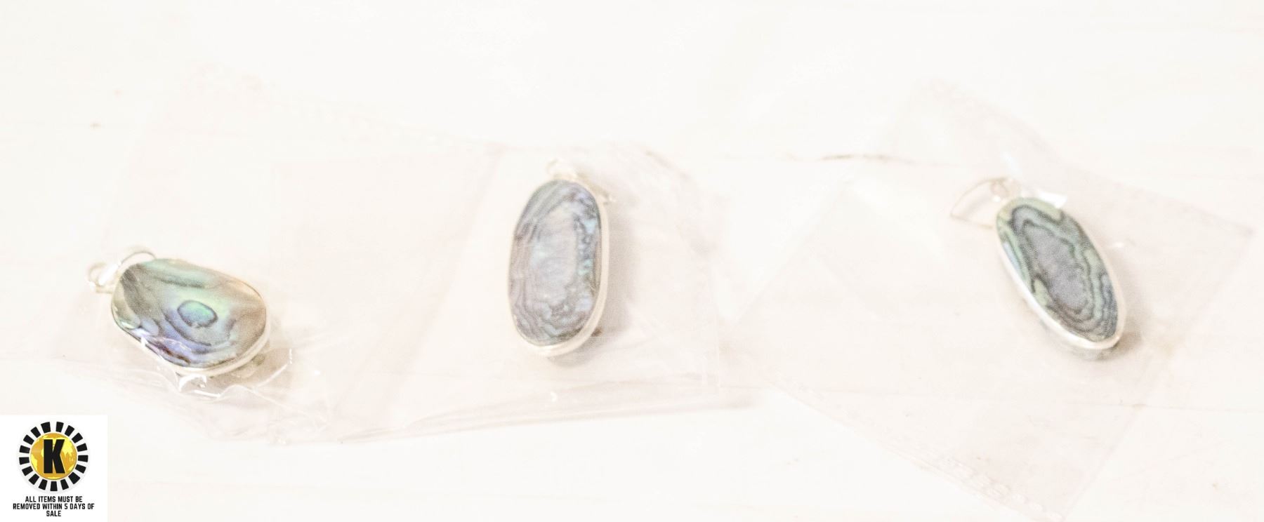 3 ABALONE SHELL 925 SILVER PLATED PENDANTS