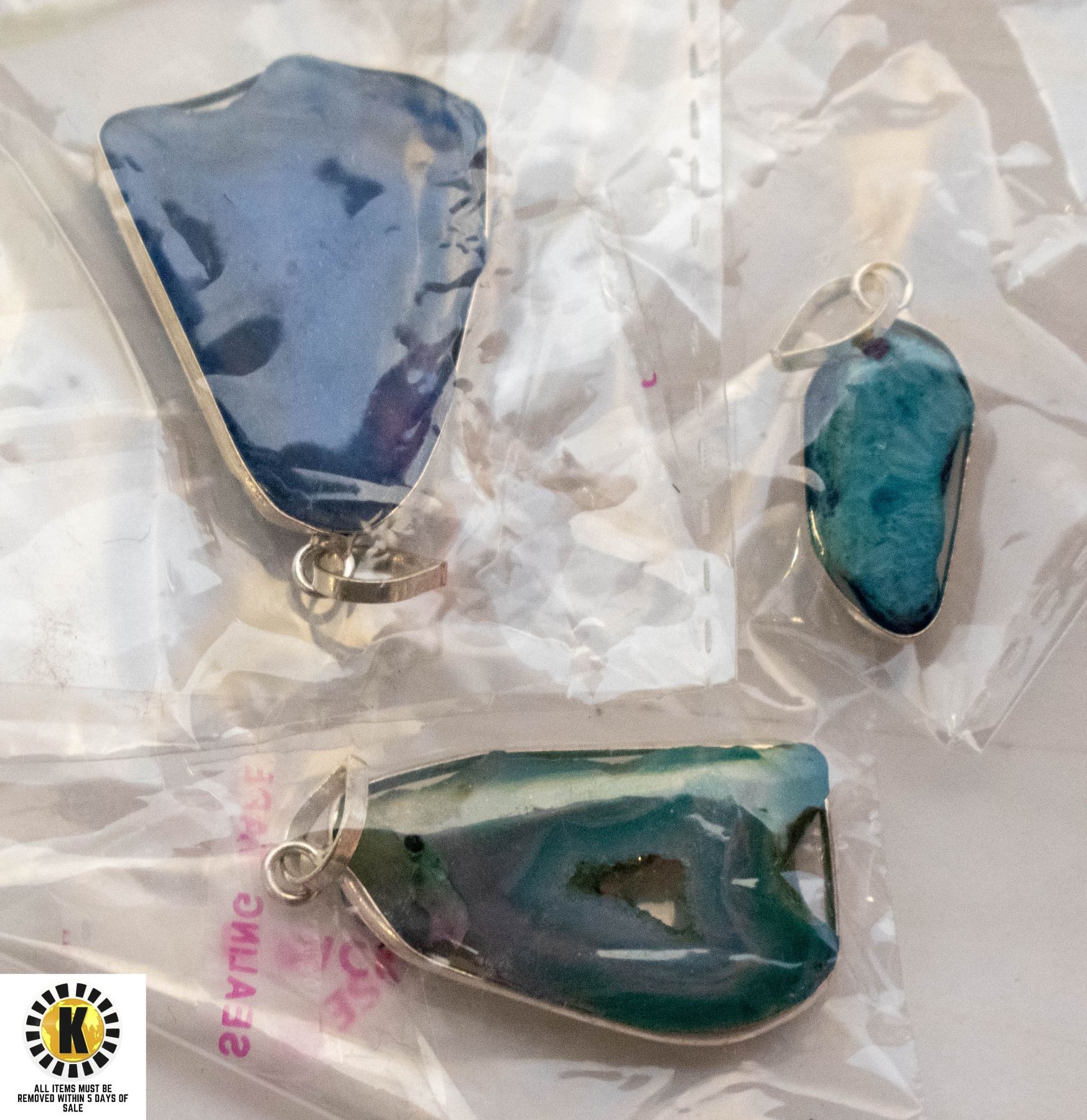 3 AGATE 925 SILVER PLATED PENDANTSÿ