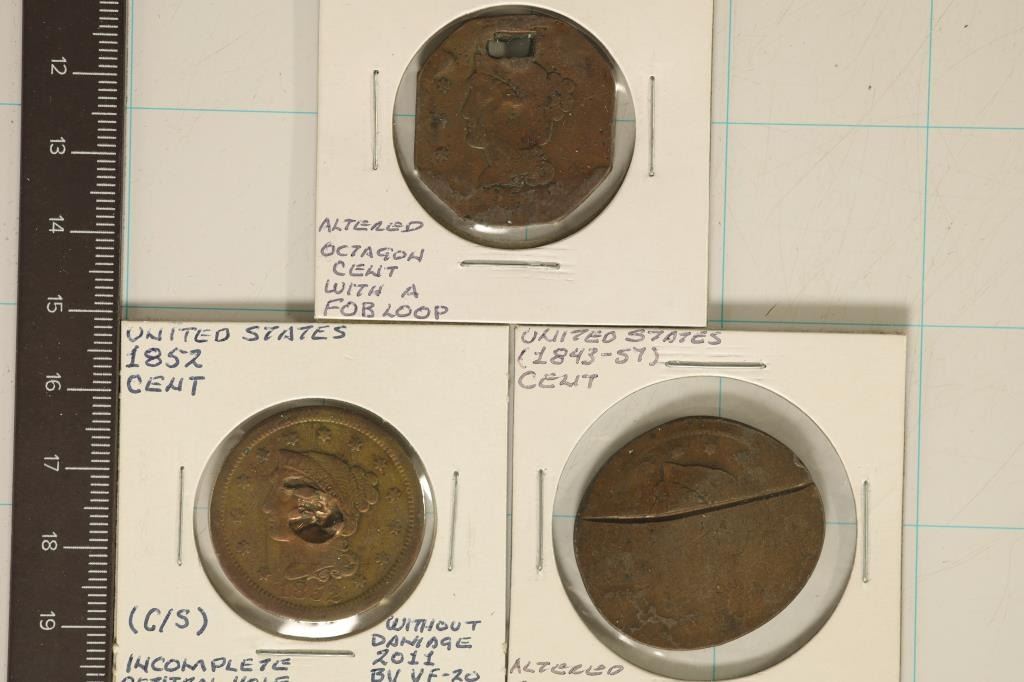 OCTAGON SHAPED, 1952 INCOMPLETE DRILLED HOLE AND NO DATE FLATTENED.