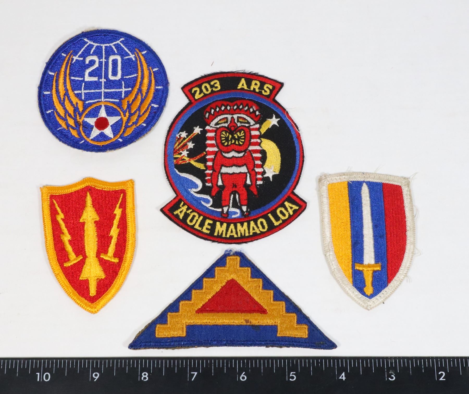 20TH USAAF SHOULDER FLASH UNITED STATES ARMY AIR FORCE MILITARY PATCH CLOTH INSIGNIA AND 10TH 40TH ARMORED DIVISION UNITED STATES ARMY CLOTH PATCH INSIGNIA UNITED STATES OF AMERICA USA