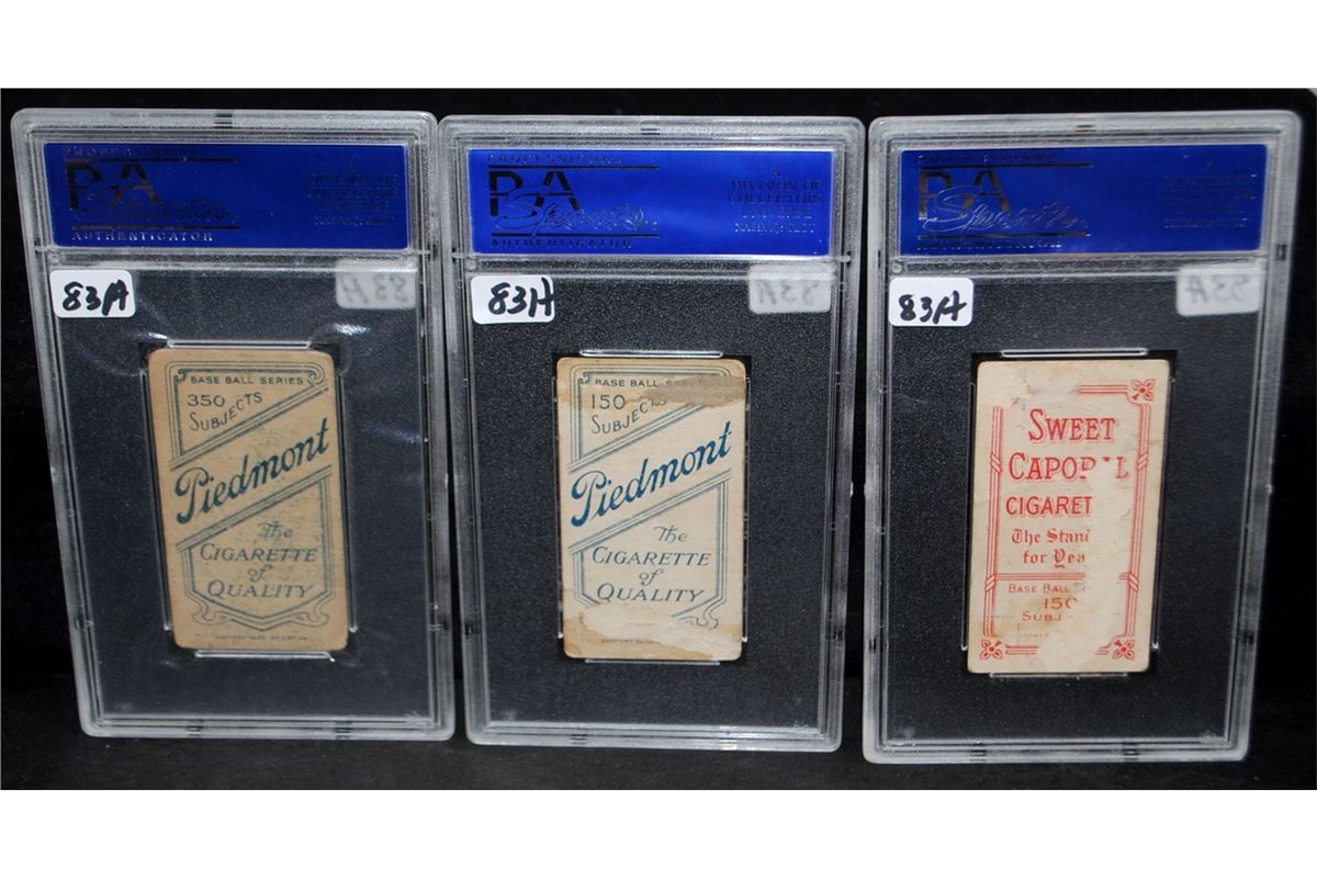 3 ANTIQUE CERTIFIED CIGARETTE BASEBALL CARDS - JOHN BUTLER (PIEDMONT CIGARETTES) PSA PR-FR 1, VIVE LINDAMAN (PIEDMONT CIGARETTES) PSA PR - FR 1, SHERRY MAGEE PORTRAIT (SWEET CAPORAL? CIGARETTE) PSA PR - FR 1, SOLD PER