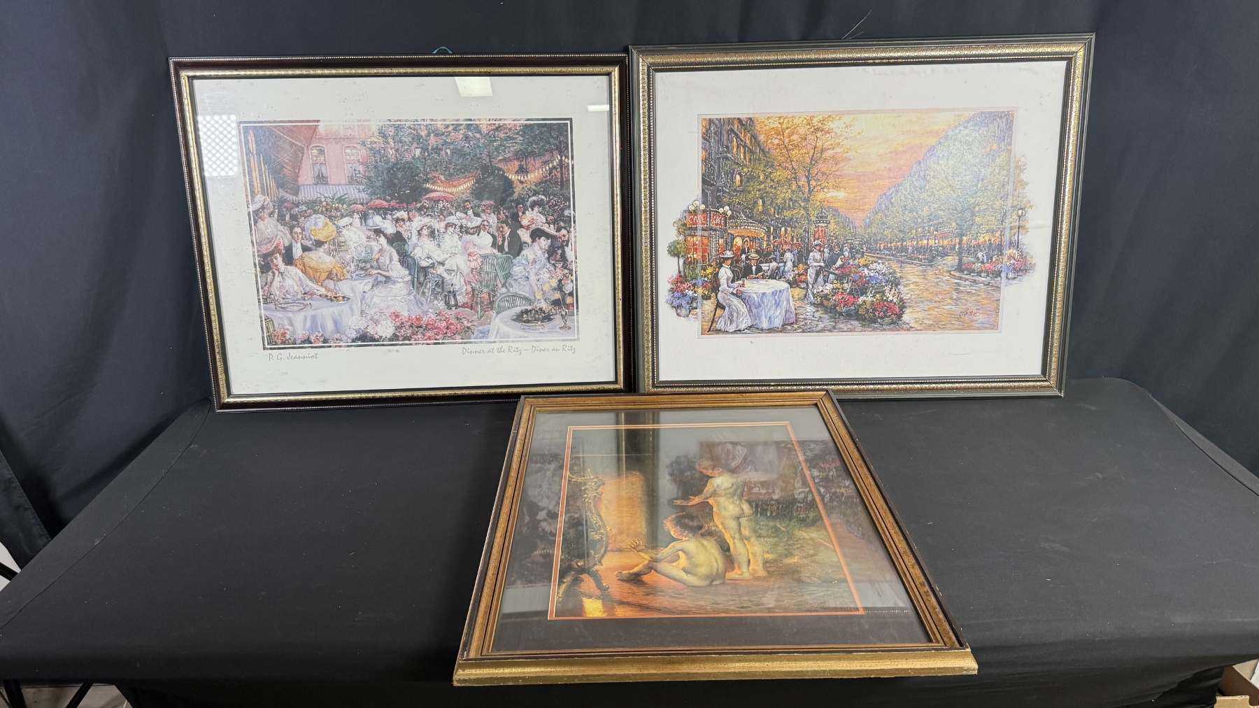 3 ANTIQUE FRAMED PRINTS 25" X 30"