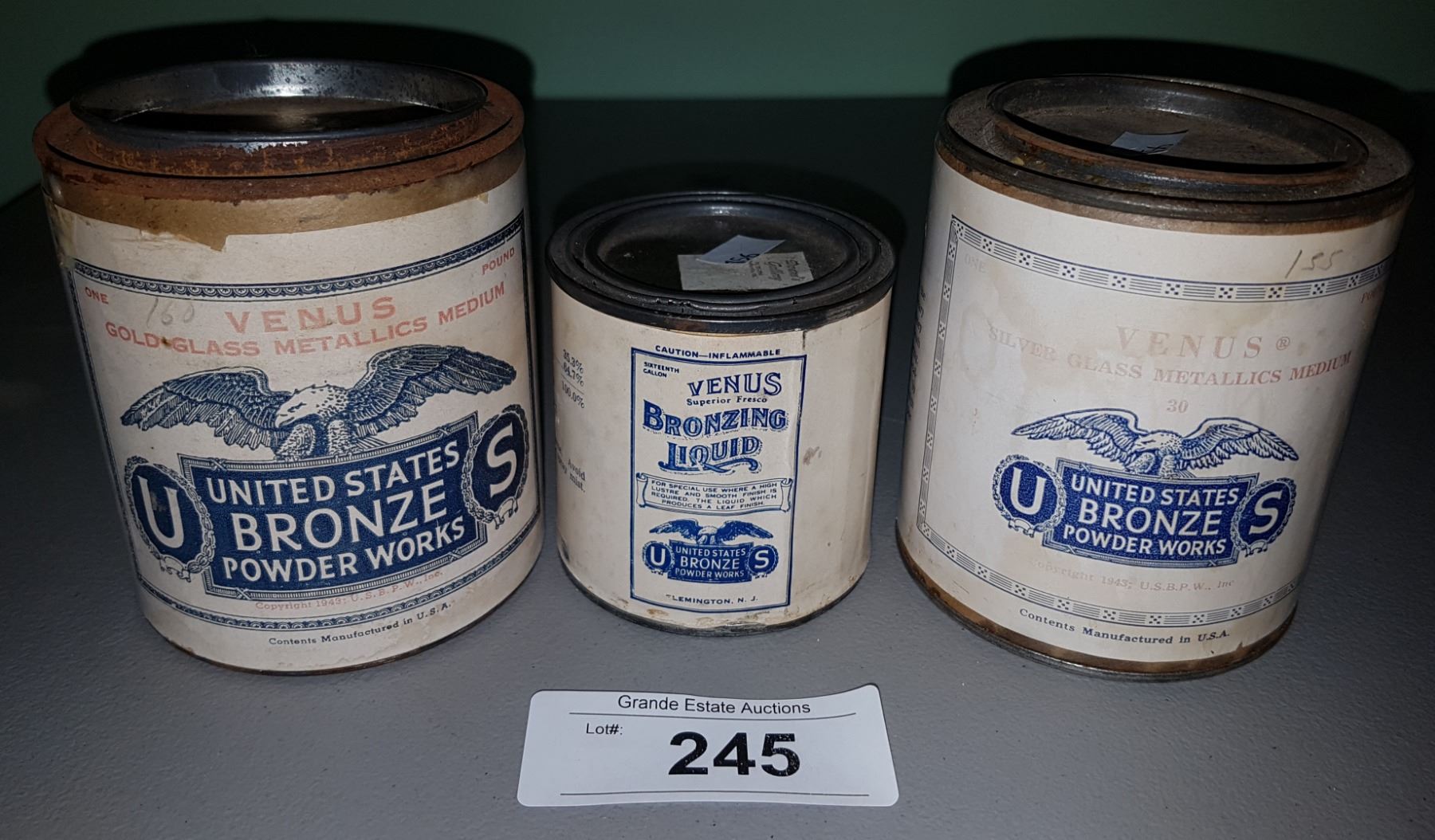 3 ANTIQUE POWDER PAINT TINS W/CONTENTS