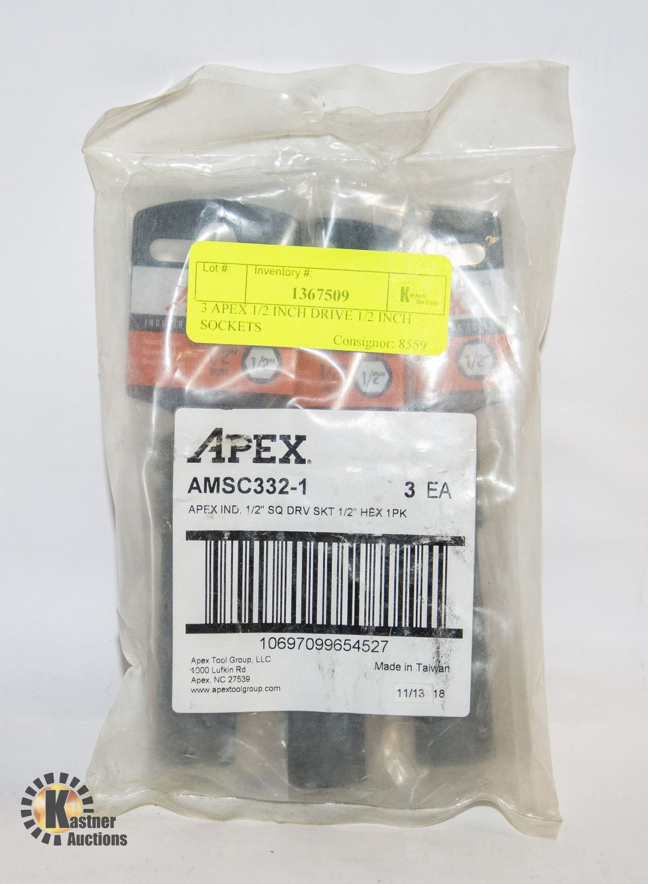 3 APEX 1/2 INCH DRIVE & 1/2 INCH SOCKETS