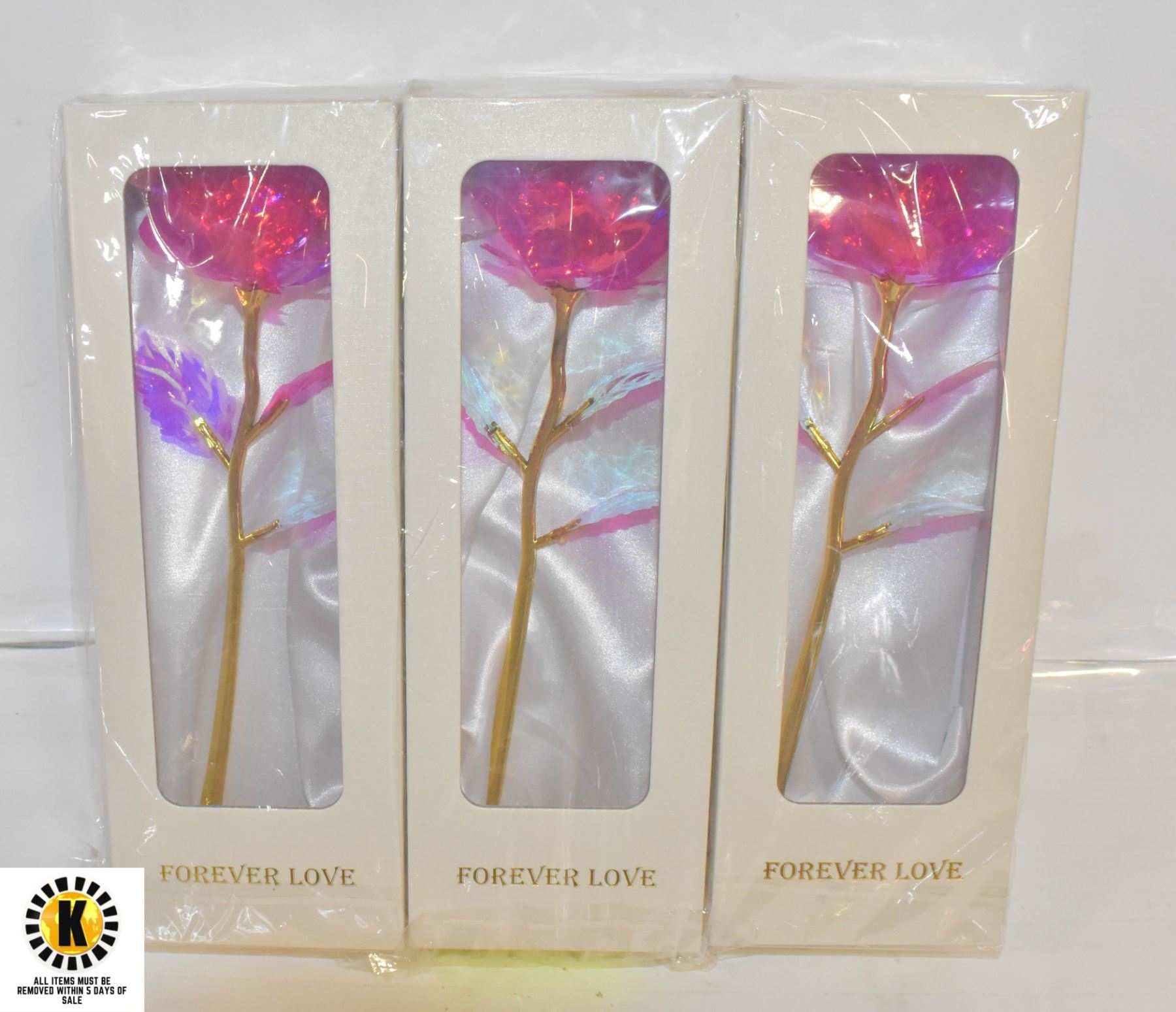 3 ARTIFICIAL 24K PLATED ROSE LONG STEM