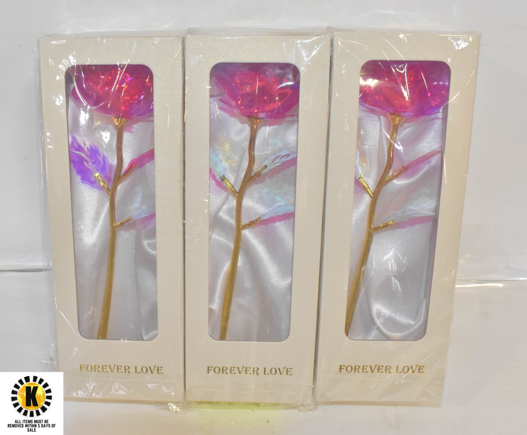 3 ARTIFICIAL 24K PLATED ROSE LONG STEM
