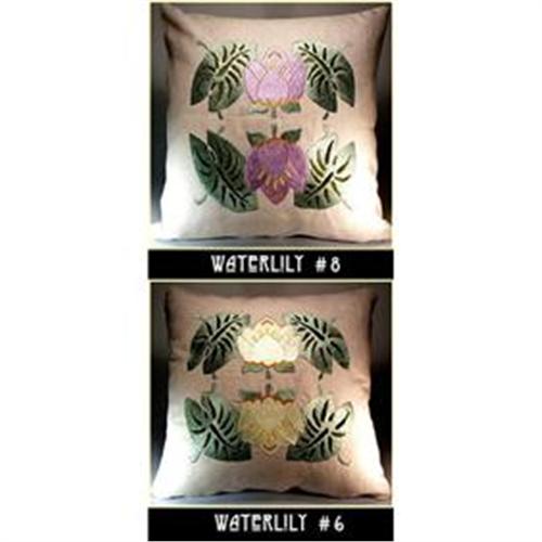 Please note that for Ebay Live Auction only bids at or above $240 will be successful and meet our reserve. Our exclusive - not available by any other seller, Gallery or Studio. Outstanding Arts & Crafts / Mission style decorative pillow cases in 8 different styles / patterns. These pillows will immediately enhance the character and charm of any room in which it is placed. Each design was hand drawn, hand traced and embroidered on an old Singer sewing machine, using what I believe is called "lock stitch". This type of embroidery will not run, like "straight" stitch. There is no (much less expensive) stenciling or appliqué used in this process. Each pillow is 18" x 18" and embroidered on a fine canvas linen. The (more expensive) addition of a zipper on one seam allows for each owner to independently choose their own filling, while also making cleaning far easier. No Arts & Crafts home is complete without the addition of fine pillows. Please note that this auction is for the pillow cases only. Pictured is 8 styles, but we have only following - Poppies #1, Ginkgo #2, Peacock #3, Moth #4, Mauve Waterlily #8 and Acorns #17. You are buying 3 pillow cases of your choice - mix or match. Comparables are offered at Galleries or Studios in the price range of $150-$250 per pillow.