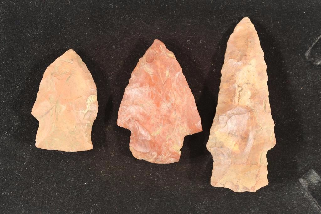 3 ASSORTED 1 3/4"-3" STONE ARROWHEADS