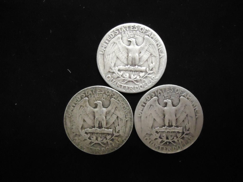 3 ASSORTED 1940'S WASHINGTON SILVER QUARTERS