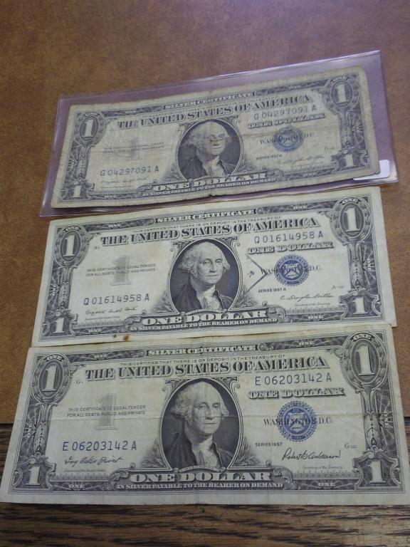 3 ASSORTED 1957 $1 SILVER CERTIFICATES