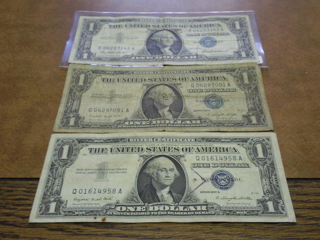 3 ASSORTED 1957 $1 SILVER CERTIFICATES
