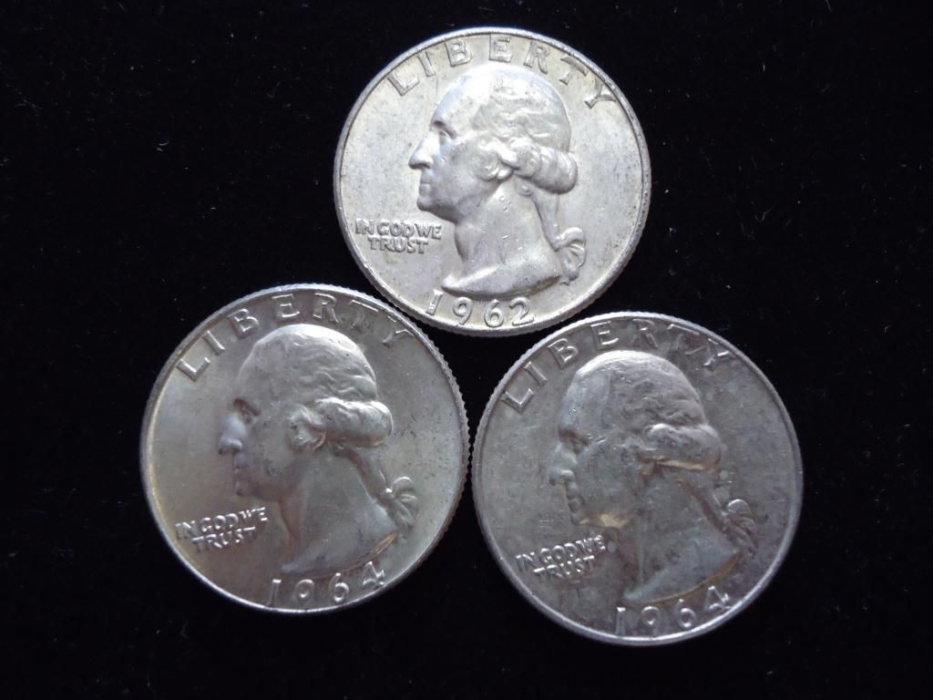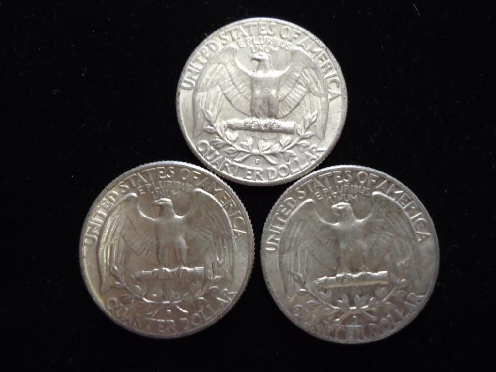 3 ASSORTED 1960'S WASHINGTON SILVER QUARTERS