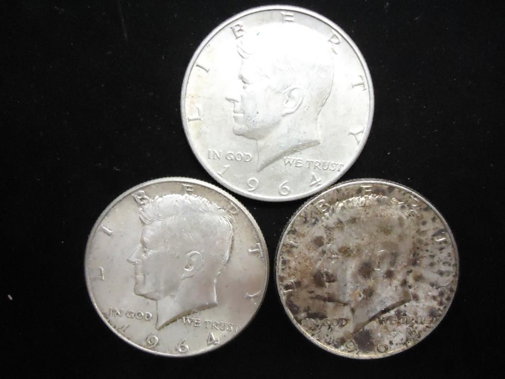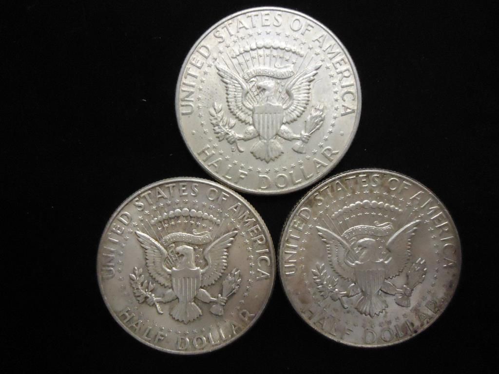 3 ASSORTED 1964 90% KENNEDY HALF DOLLARS