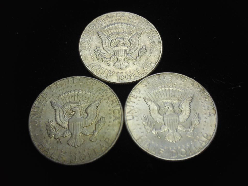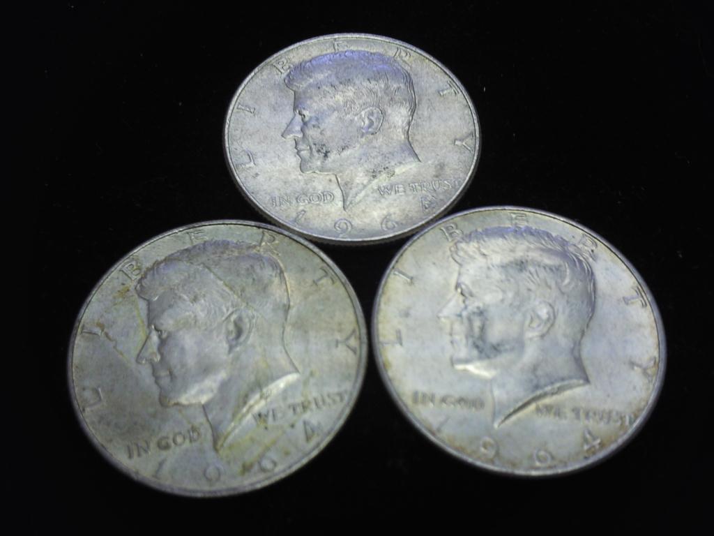 3 ASSORTED 1964 SILVER KENNEDY HALF DOLLARS