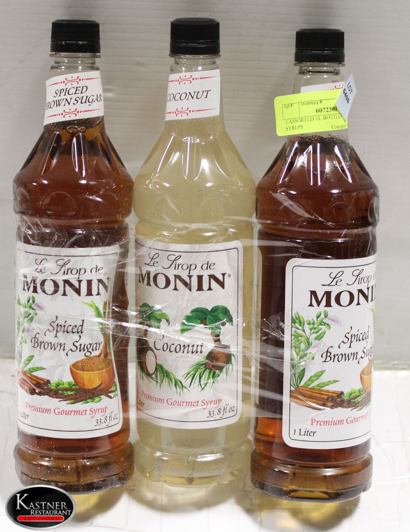 3 ASSORTED 1L BOTTLES OF MONIN SYRUPS