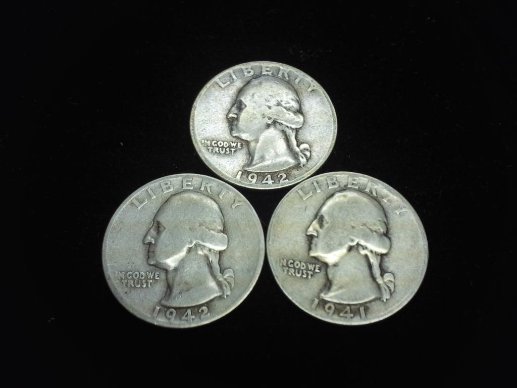 3-ASSORTED 40'S WASHINGTON SILVER QUARTERS
