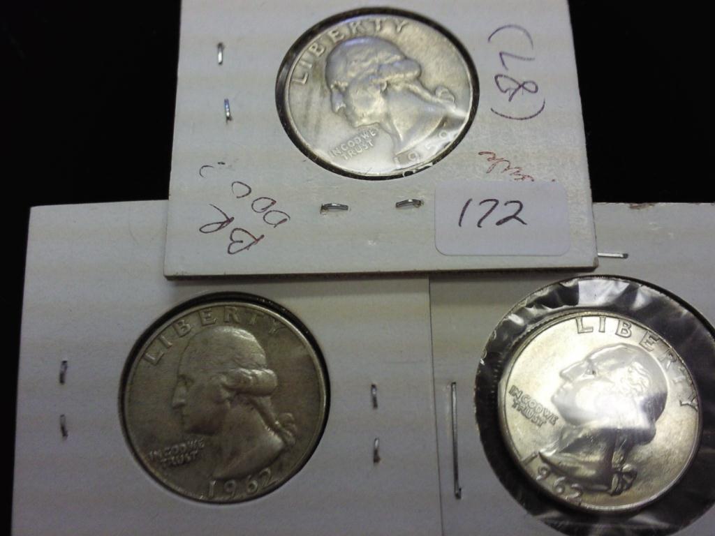3 ASSORTED WASHINGTON SILVER QUARTERS
