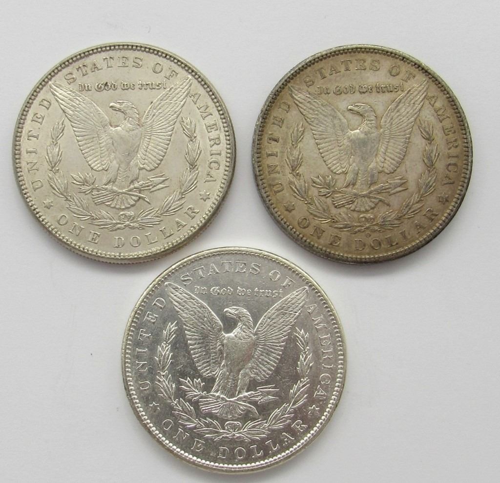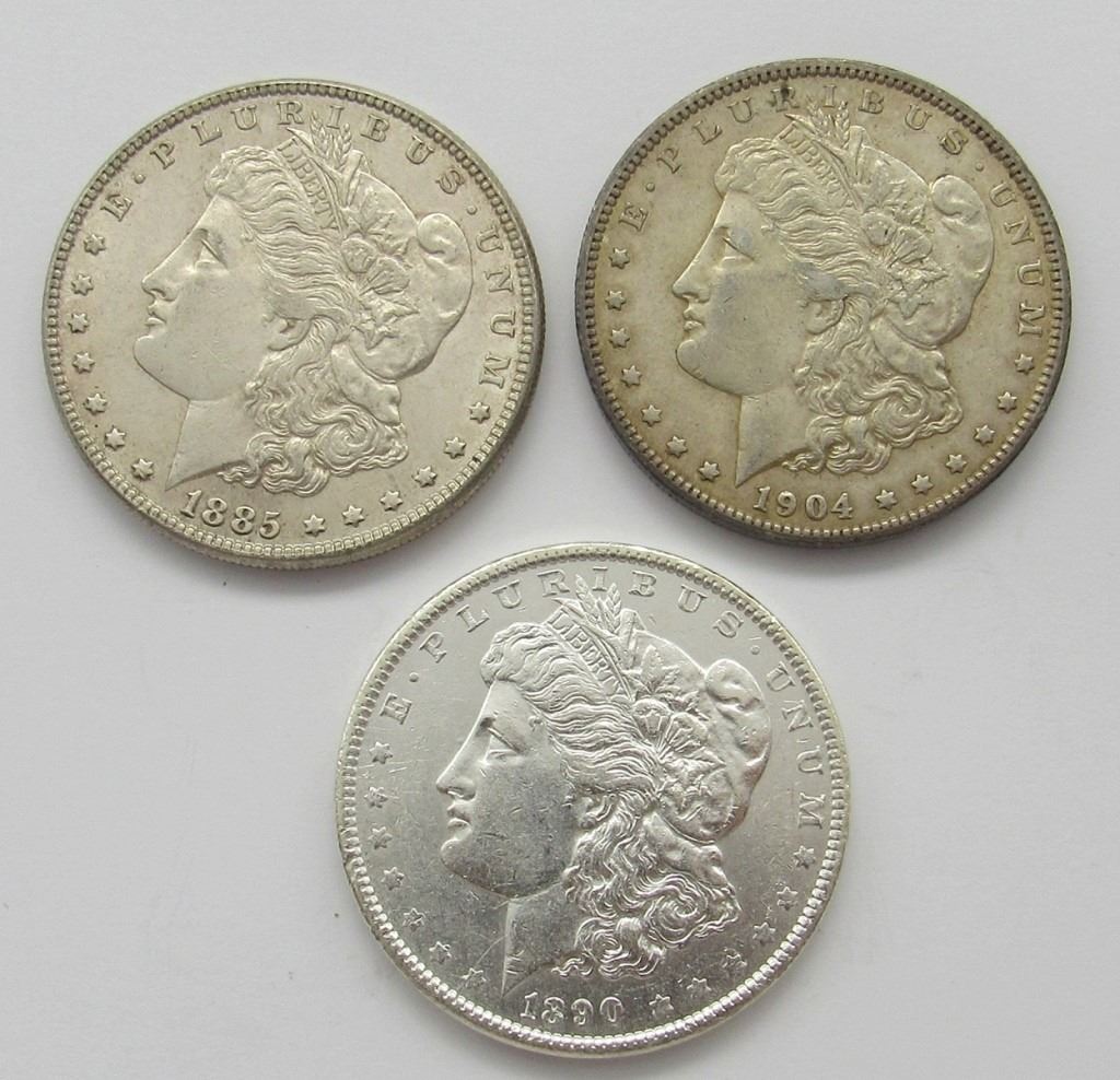 3-AU/UNC MORGAN DOLLARS: 1885, 1890, 1904-O