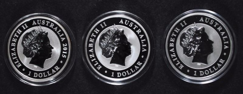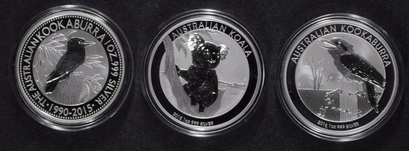 3 - AUSTRALIAN SILVER DOLLARS - 2015 KOALA, 2015 KOOKABURRA, 2016 KOOKABURRA