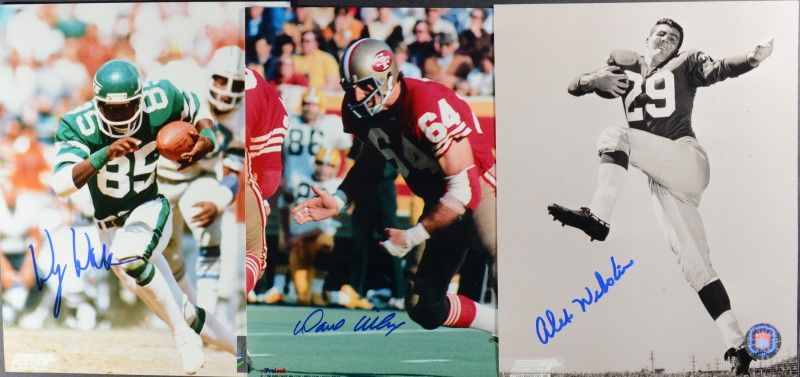 3 AUTOGRAPHED 8 X 10 FOOTBALL PHOTOS: WESLEY WALKER, DAVE WILCOX, &