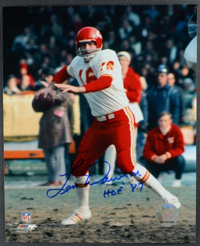 3 AUTOGRAPHED 8 X 10's: LEN DAWSON KANSAS CITY CHIEFS SIGNED 8X10 PHOTO HOF 87,