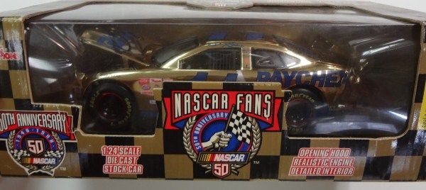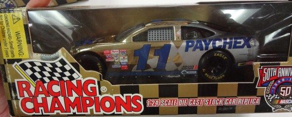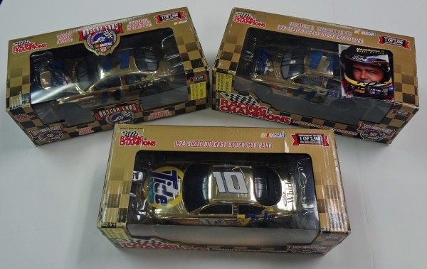 50th ANNIVERSARY NASCAR DIE CAST CARS, 2- #11 BRETT BODINE AND 1- #10 RICKY RUDD IN ORIGINAL BOXES AND AUTOGRAPHED VALUED $75