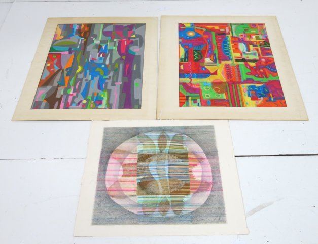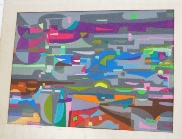 2 oil on paper. Unframed, unsigned. 1 colored print, signed illegibly lower right, unframed, Mexican, 20th century. Oil on paper approx. 27" x 19". Good condition.
