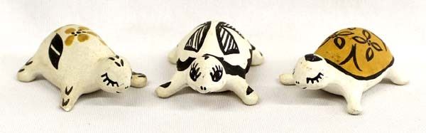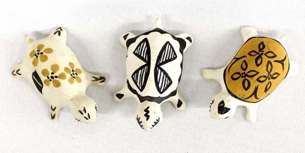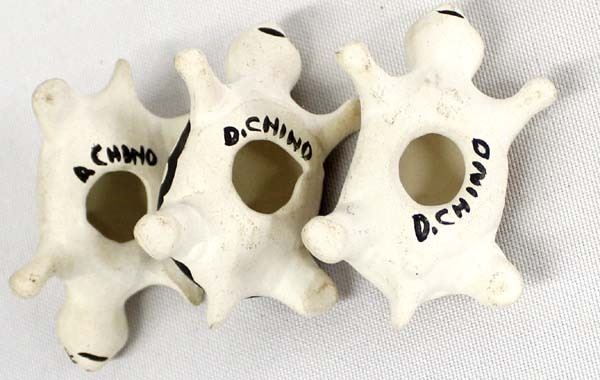 3 Native American Acoma Painted Ceramic Pottery Turtles, largest measures 2'' x 1'', two are marked D. Chino and one is marked A. Chino