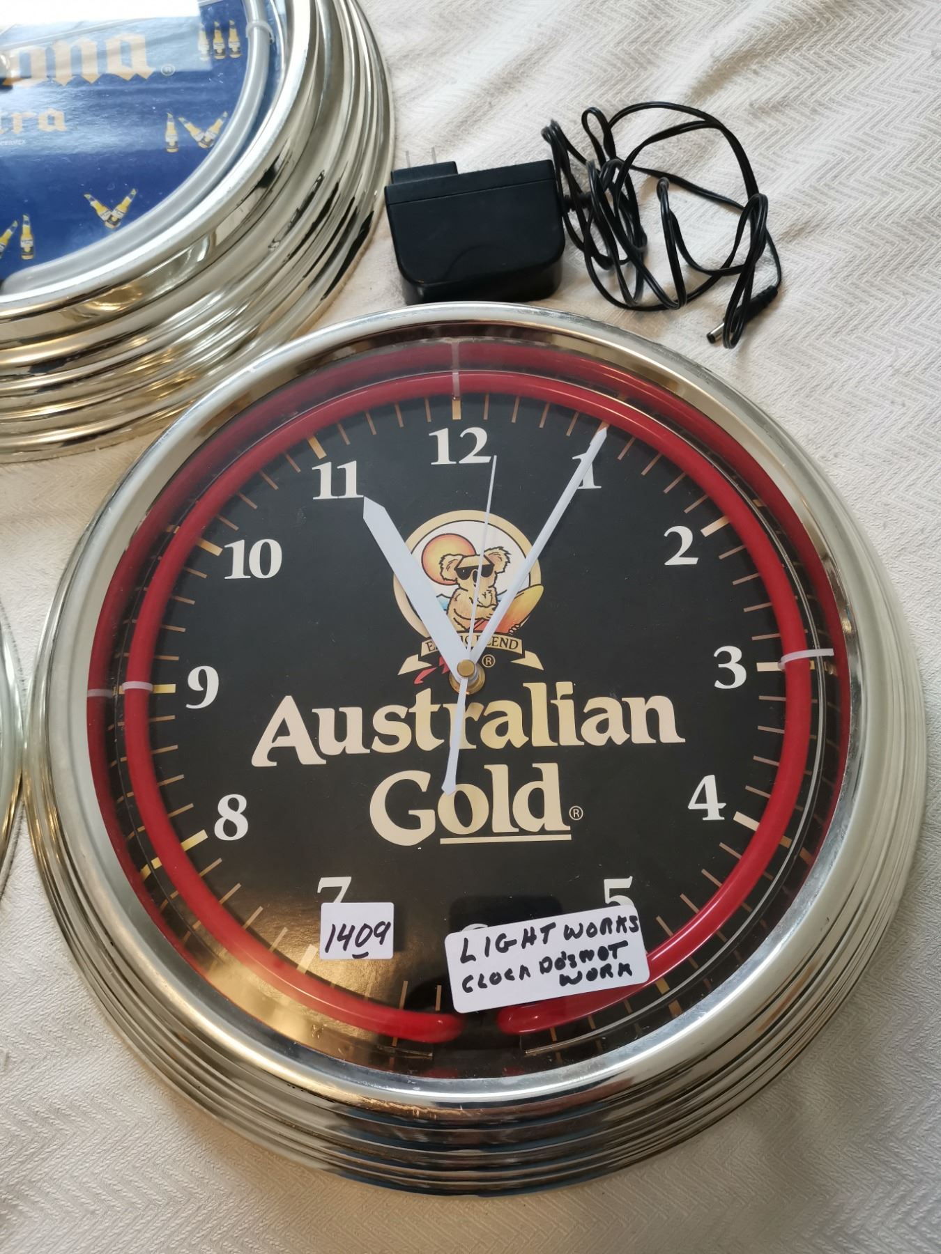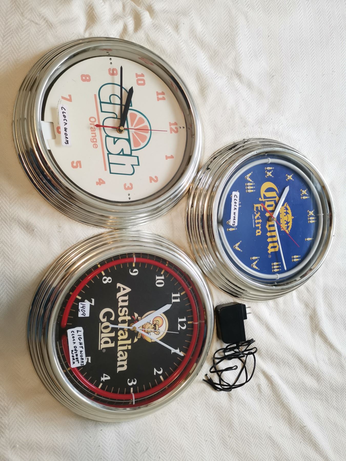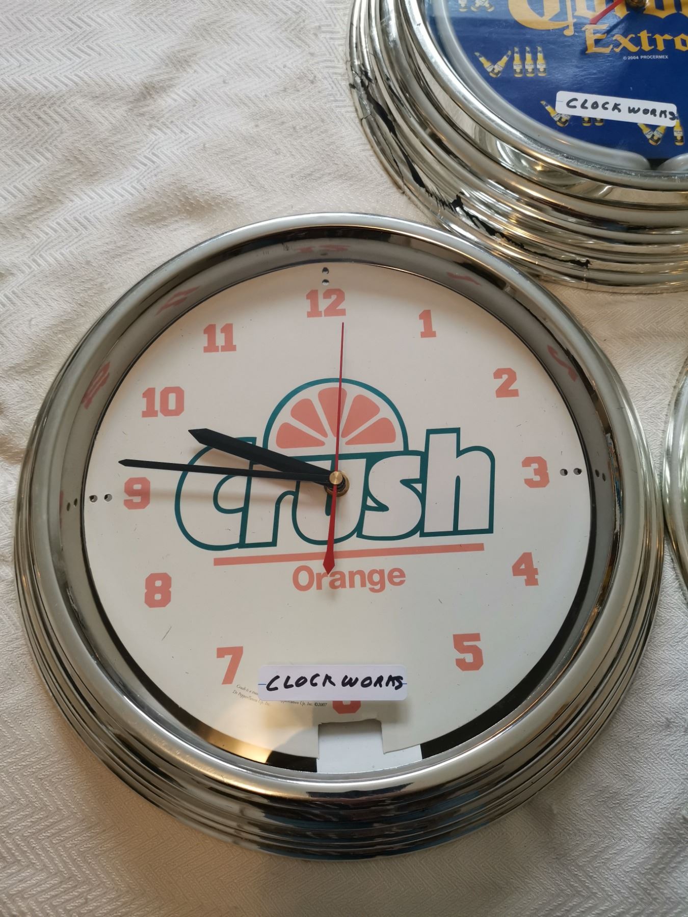 3 Ad Clocks Lightworks on one 2 clocks Working 14"
