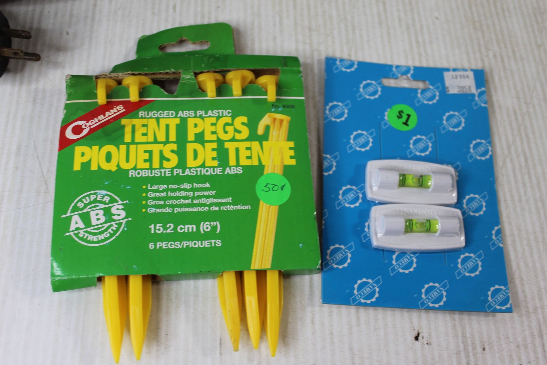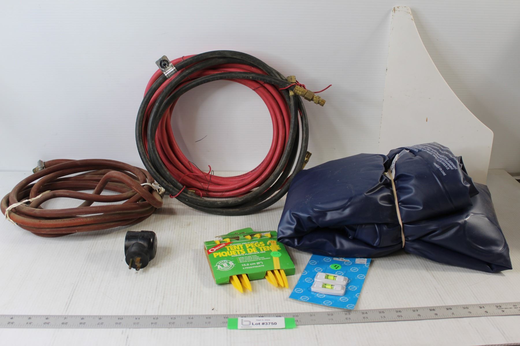 (3) Air Compressor Hoses, Pack of (5) Tent Pegs, Nameco Levels Pieces, Boating Water Single 39" Tube