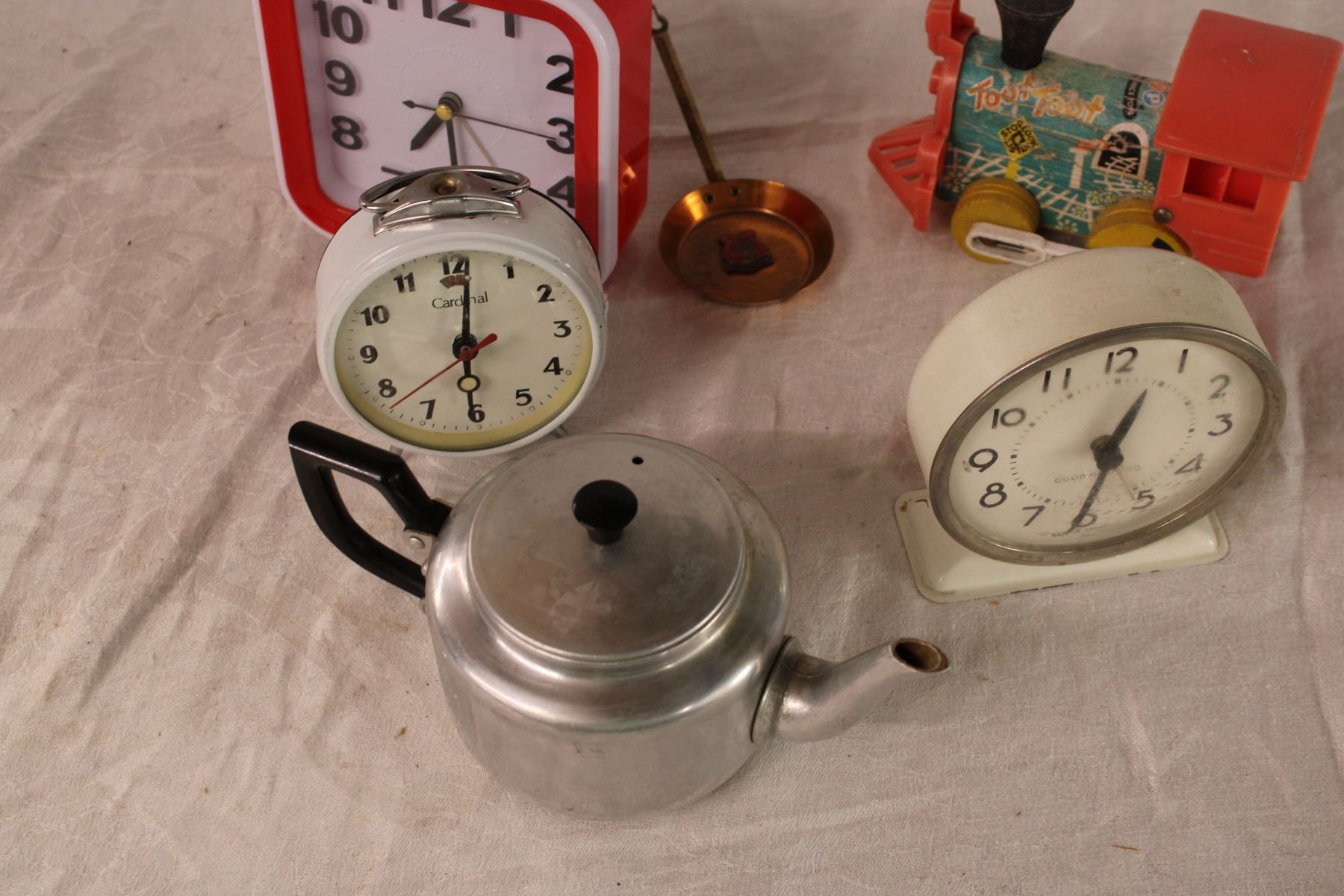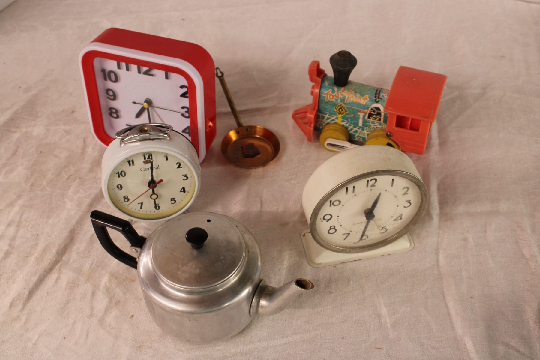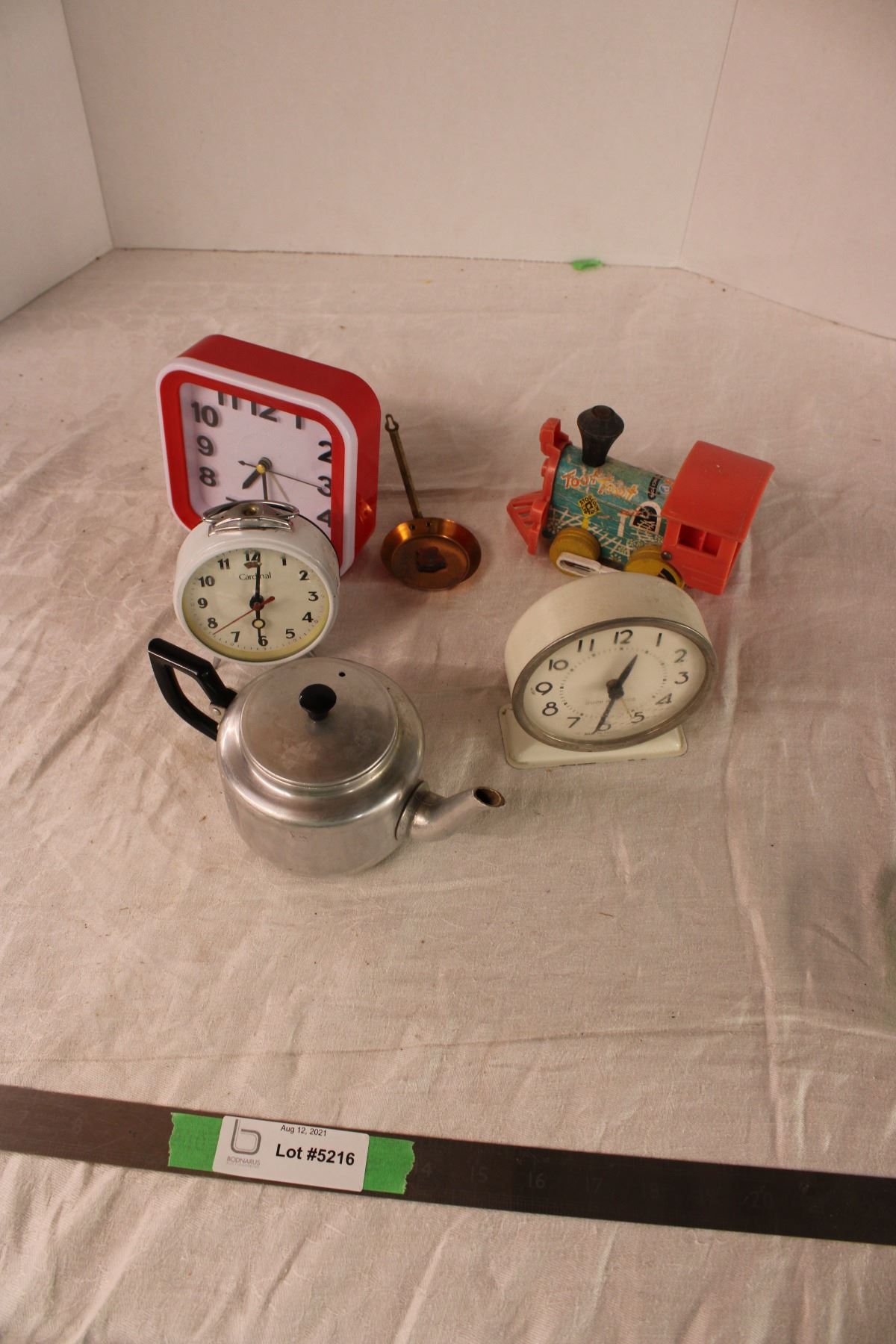 3 Alarm Clocks Miniature Tea Pot Toys Misc