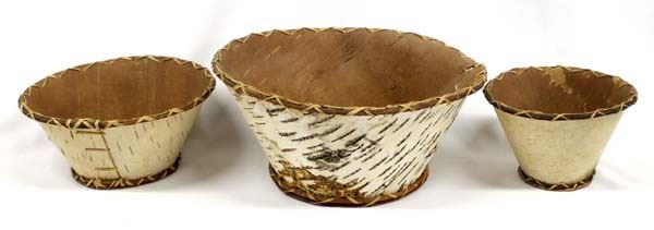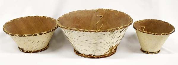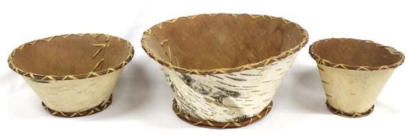3 Alaskan Graduated Birch Bark Baskets, largest measures 5'' x 11''