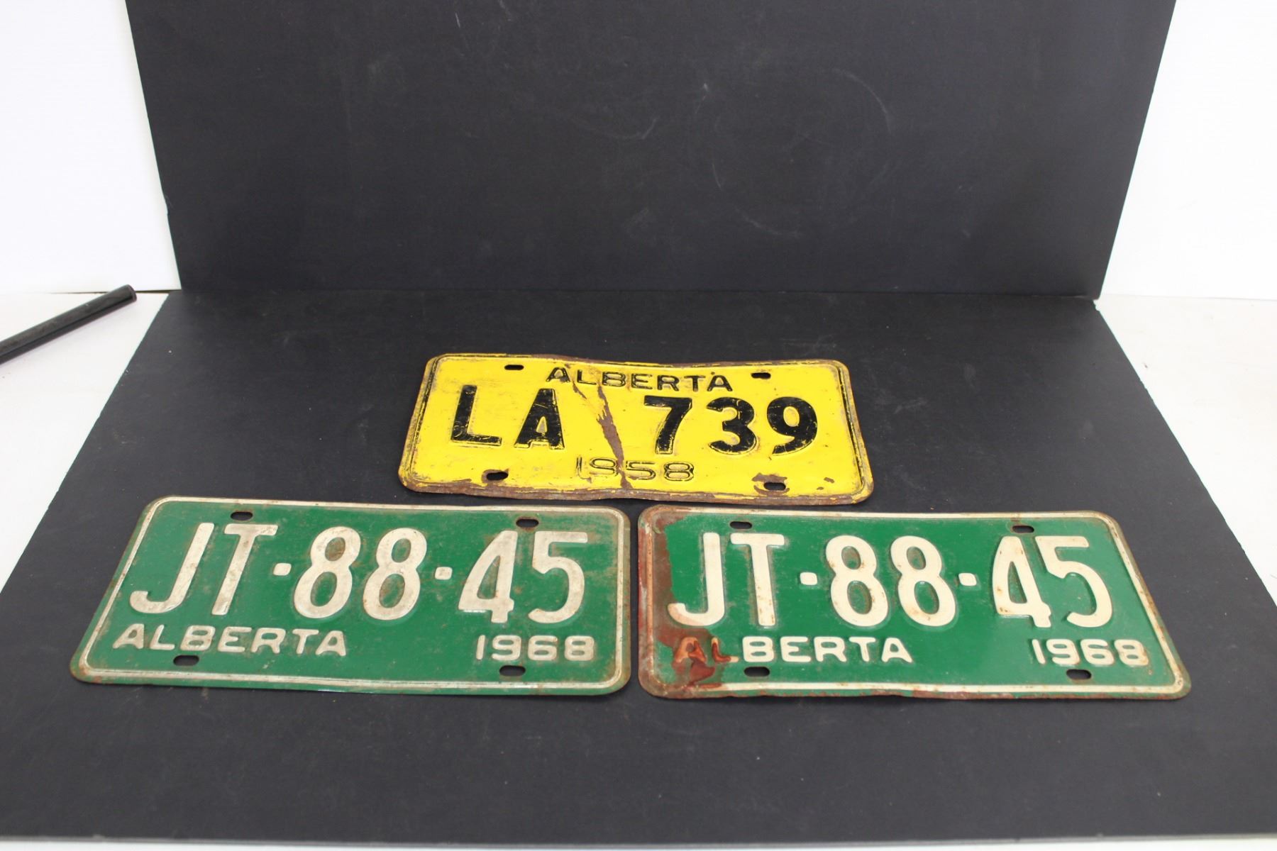 (3) Alberta License Plates - (1) 1958 and Pair of 1968
